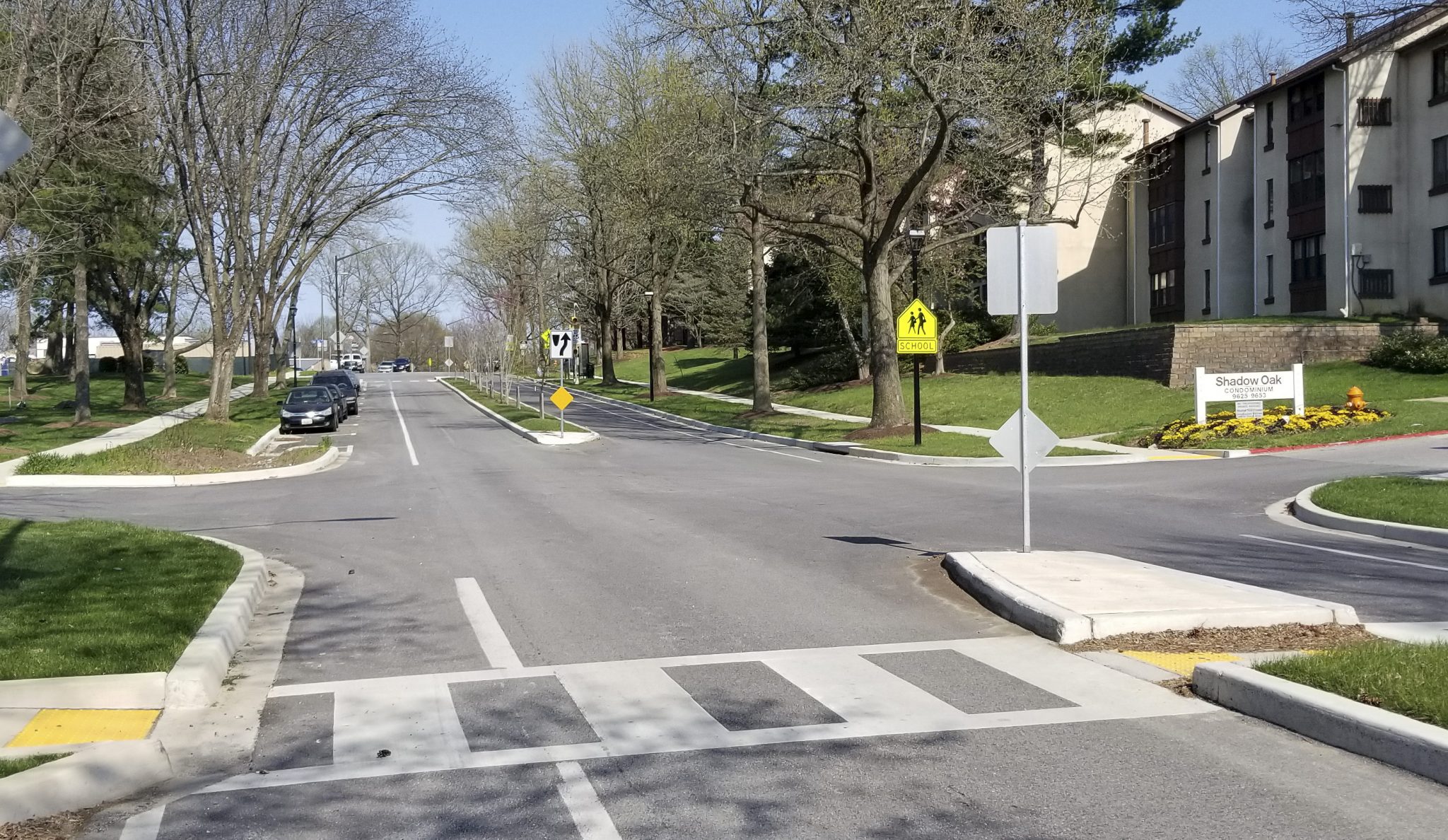 The White Acre Road Complete Streets Pilot Project first started out looking beyond the project’s limits at the adjacent roadways and surrounding residential and commercial site development of suburban Oakland Mills in Columbia, MD. There was a crucial need to address the mix of high pedestrian volumes during the school year to access Talbott Springs Elementary School, speeding traffic, and safe mobility options for pedestrians and cyclists. Ultimately, the project would provide improved connectivity for pedestrian and bicycle access to the new Blandair Regional Park and the Columbia Town Center in the opposite direction.