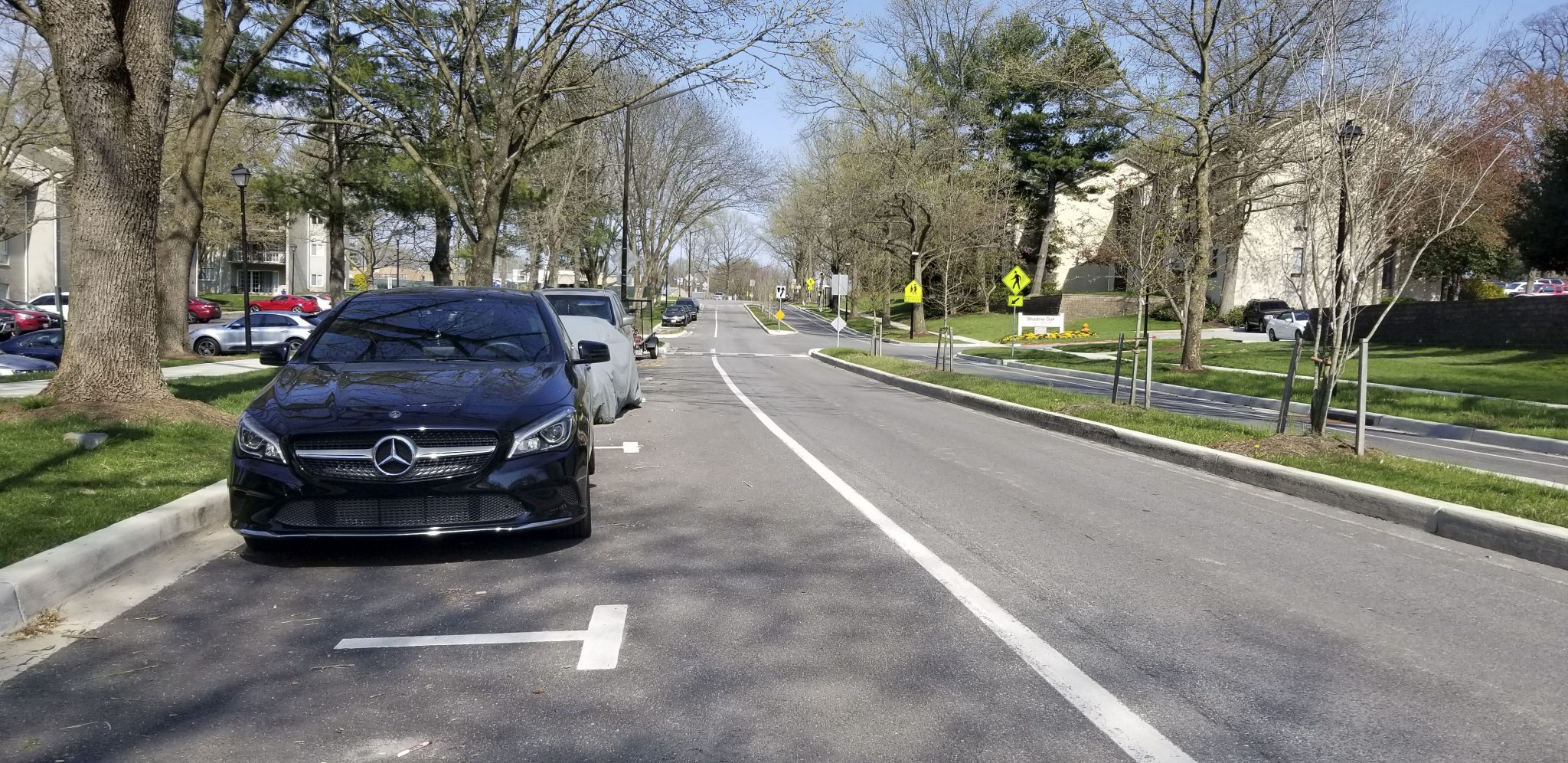 We often see speed humps introduced as a knee-jerk reaction to slowing traffic. Unfortunately, they also create unsafe conditions for bicyclists, offer no environmental benefit, and are a short-term solution, often seen in disrepair. Projects like The White Acre Complete Street Pilot Project provide a precedent, controlling traffic through proven traffic-calming techniques. This maximizes benefits to alternative transportation modes and the environment, while minimizing maintenance, providing more equitable mobility, and elevating the level of comfort for cyclists and pedestrians, turning the street into a safer and more enjoyable public space for all.