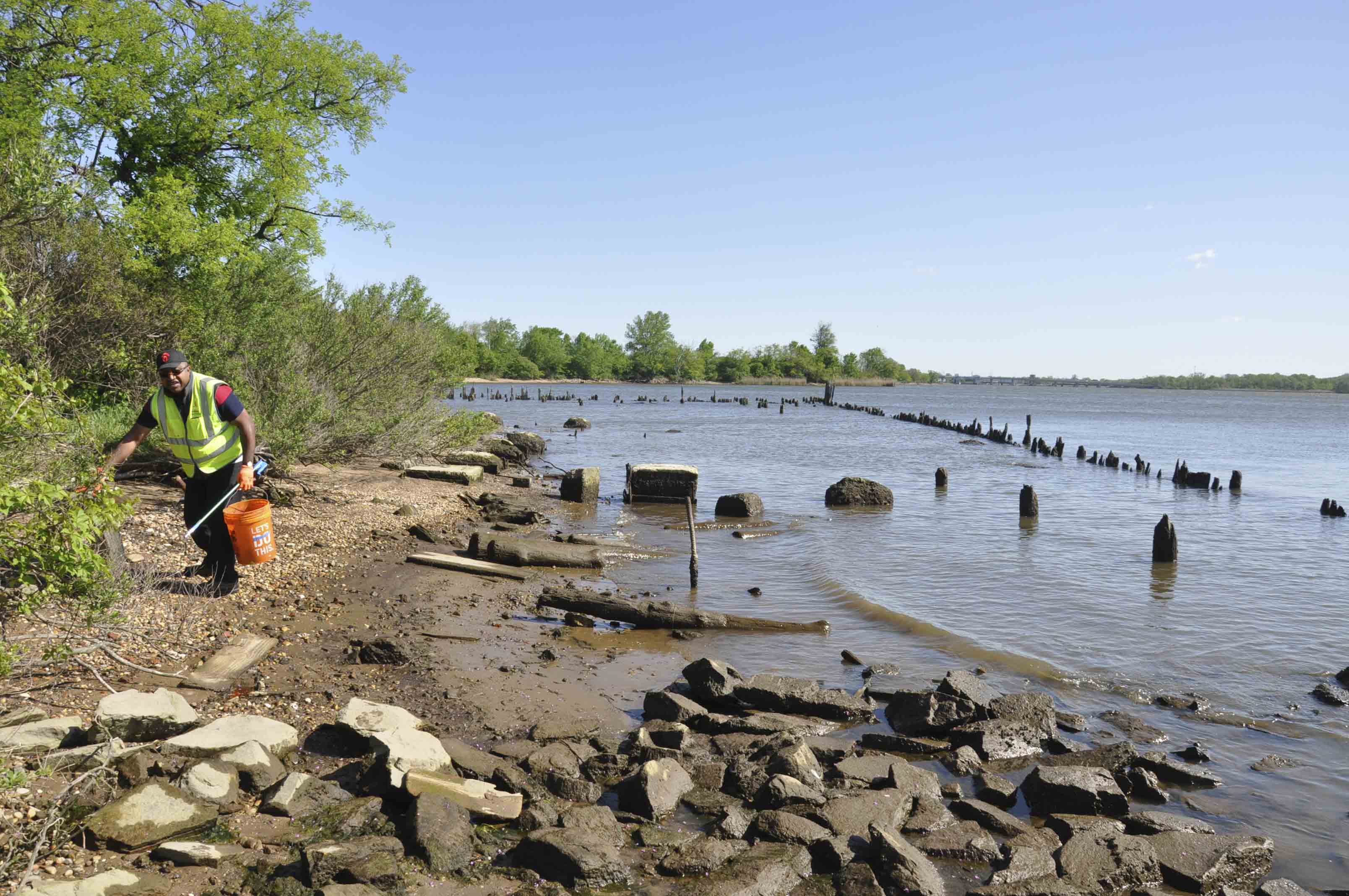 That these ideas are not only being accepted, but also supported by the Turner Station community is a big deal. Turner Station is a historic African American community located along the Bear Creek tributary of the Patapsco River across from the old Bethlehem Steel Plant – now home to the global logistics hub Tradepoint Atlantic. In listening to the community, we learned about the ups and downs of living with industry as a bedfellow and how deeply rooted the community is not only to the land, but also to our nation’s history. They were the men and women who made the steel that helped our nation win WWII, and they were the families that made the ultimate sacrifice fighting in that war and those that have followed. They lifted up and were lifted up by industry through their blood, sweat, and tears, and now they are fighting to nurture and reclaim a community that has changed over the years as families have moved and new neighbors have settled in. You might be wondering how this relates to the Port or its mud, and in part of to the answer is Fleming Park, a 16-acre county park that was once a community hub, but that has fallen from its original glory after decades of impacts along the shoreline from highway construction to industrial pollution, to erosion and climate change.