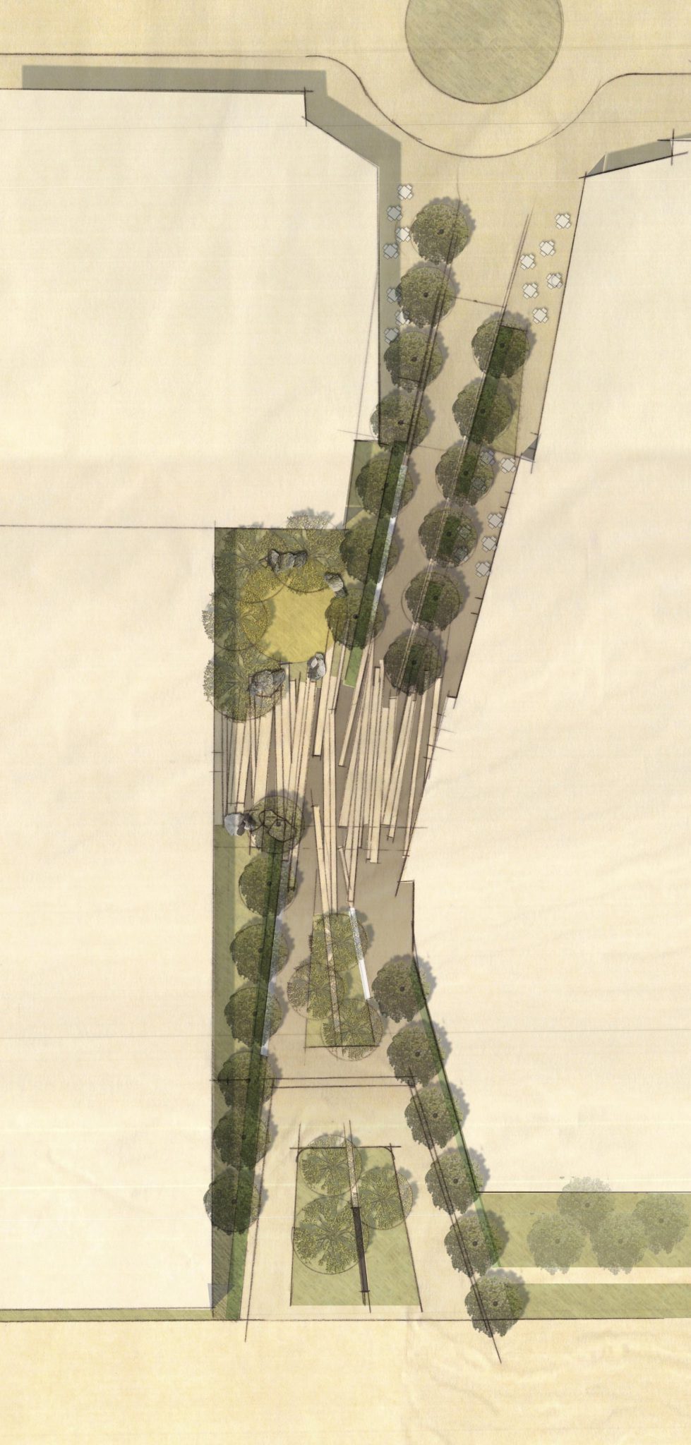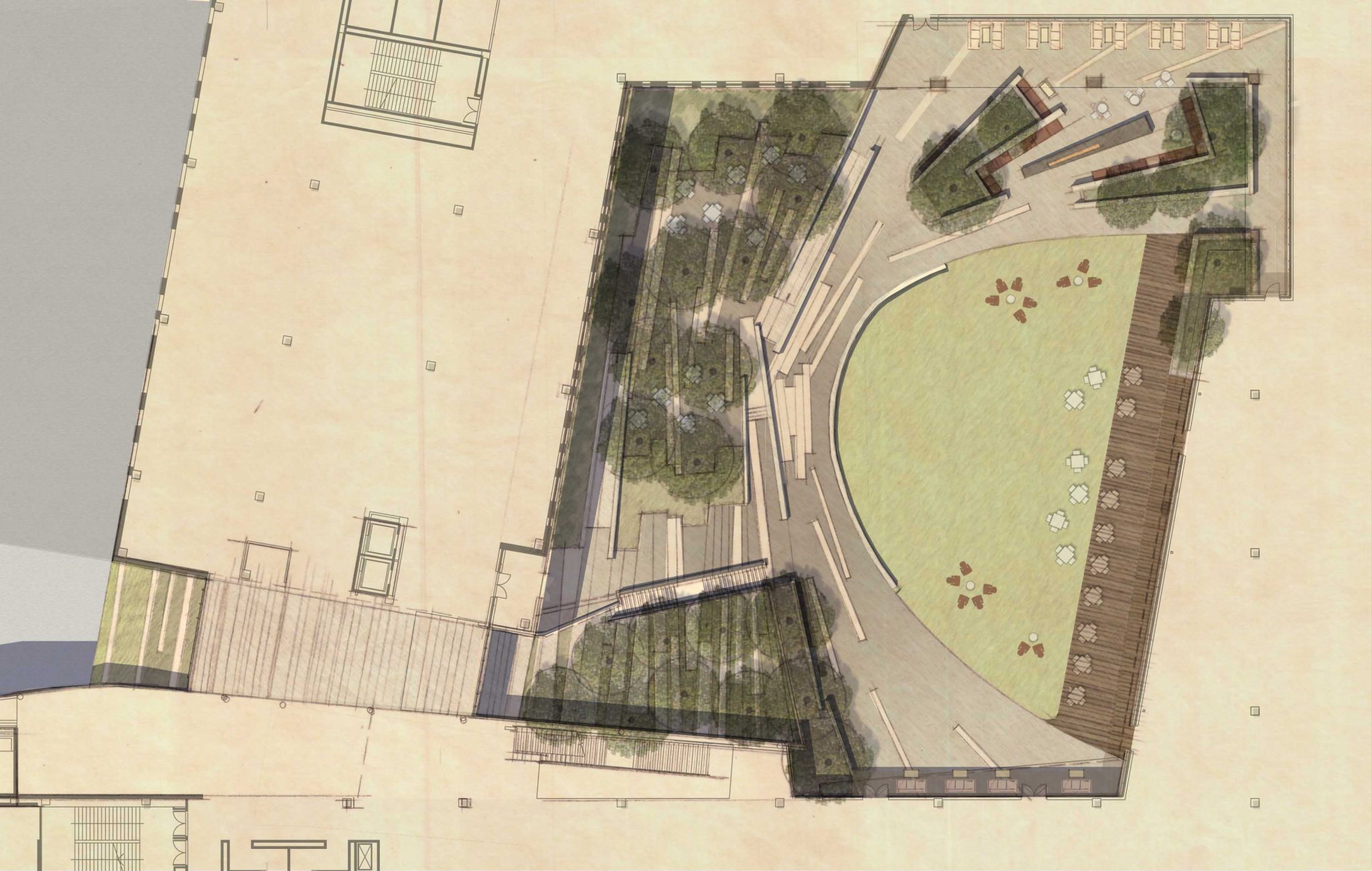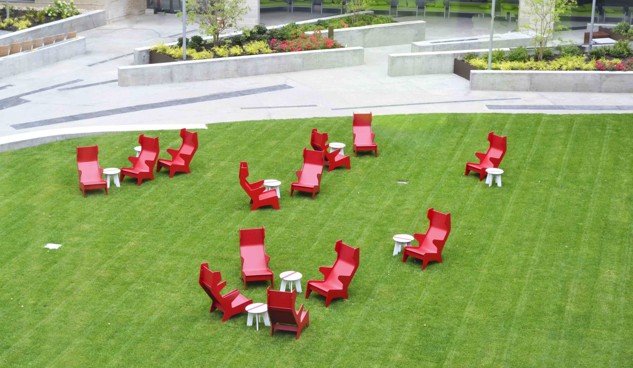 Mahan Rykiel’s contribution to the headquarters entailed creating both rooftop and ground-level exterior spaces which would extend AG’s creative process into the outside environment. The concept-driven design for these spaces drew inspiration from the glacial geology of the area—specifically borrowing from the influence that a thousand-year glacial movement had on the character of the Great Lakes region.