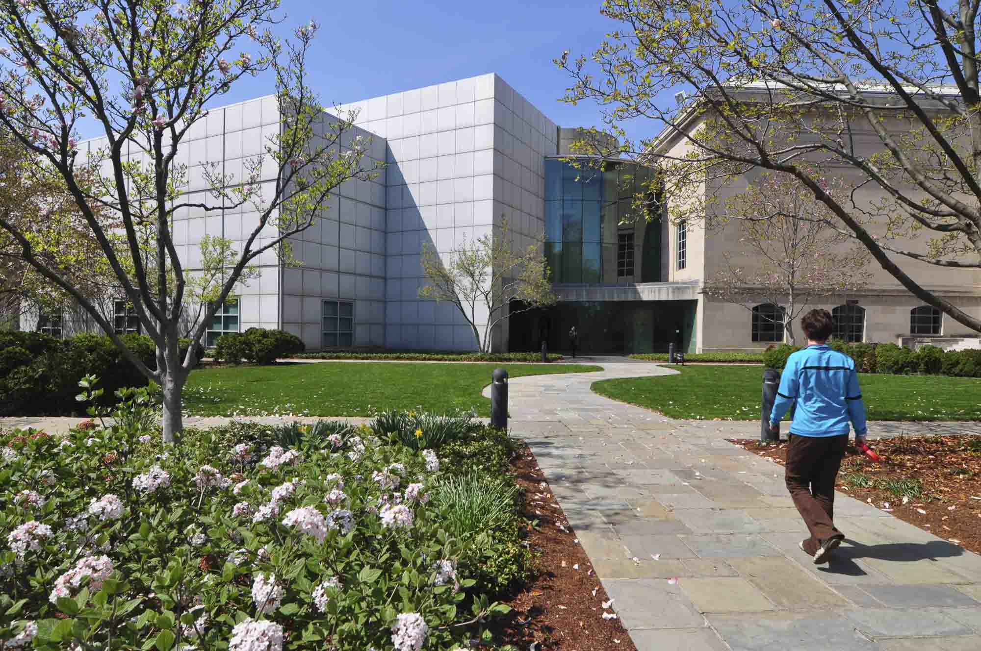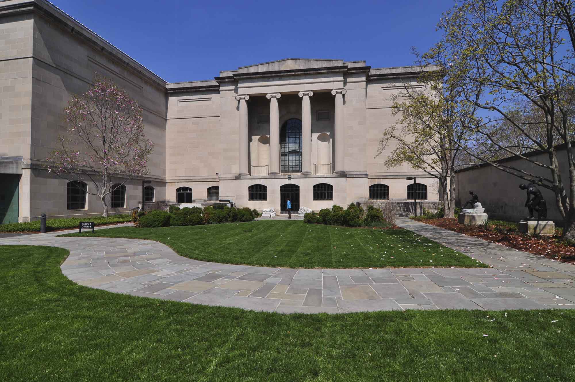Mahan Rykiel Associates developed a landscape plan for the West Wing which involved site grading, hardscape design, construction documents and a planting plan. MRA carefully integrated the Museum addition into the site while preserving the integrity of the formal garden and woods that surround it. Repetition of the existing plant types and clear, simple planting bed lines support the spatial relationship between the new structure and the overall Museum complex. Sensitive grading was required to preserve the many existing trees.