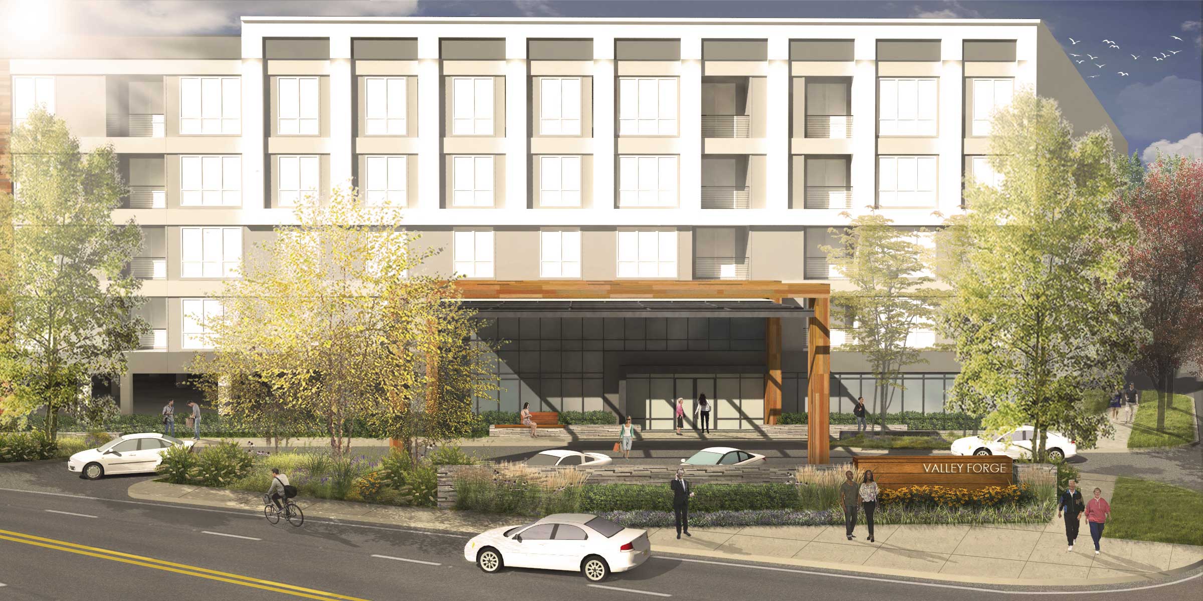 Valley Forge VR-3 is an active older adult living residential community in King of Prussia. This community consists of approximately 230 residential units on a parking podium with a focus on amenities that will attract a mix of ages and cultures.