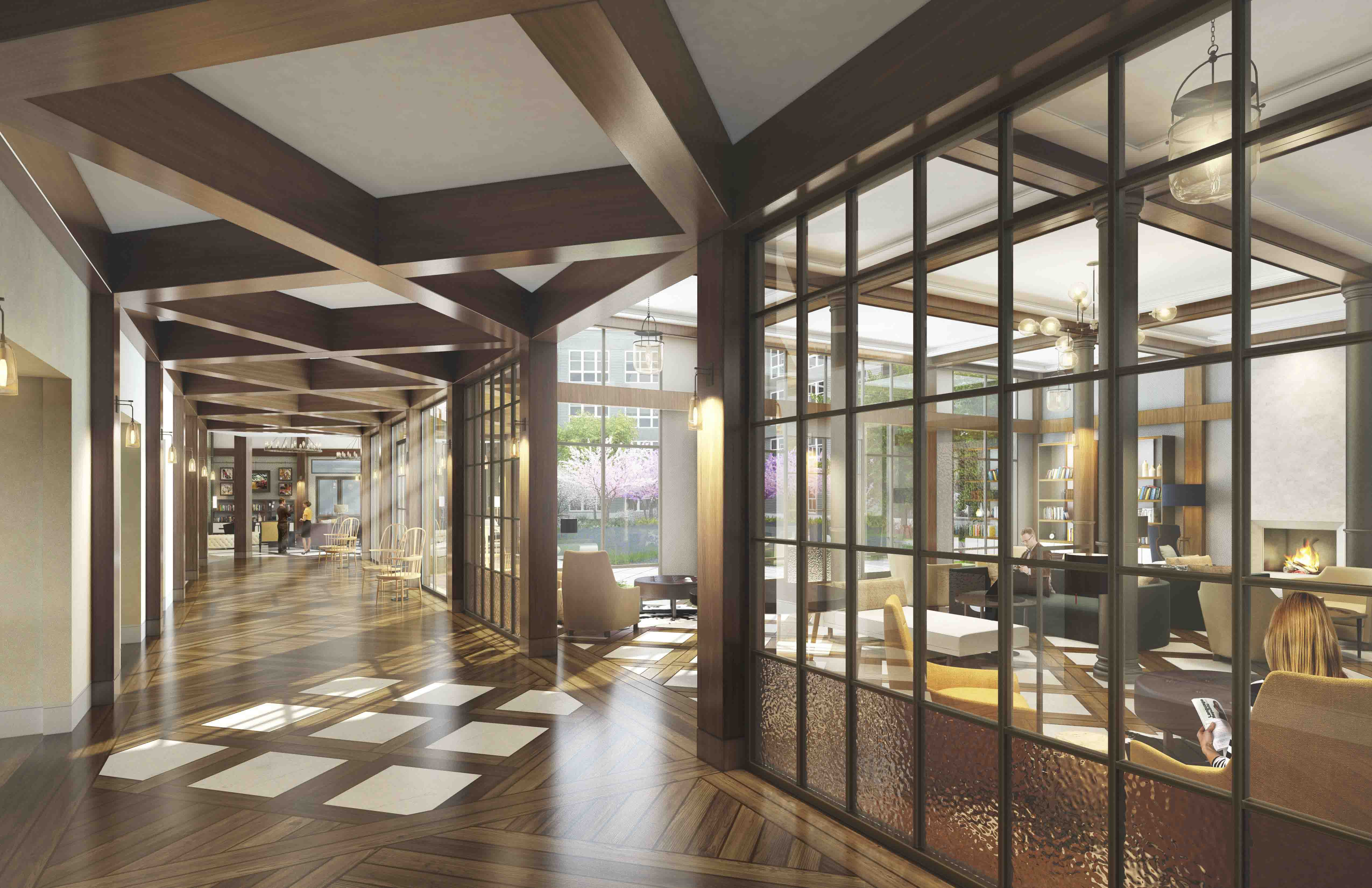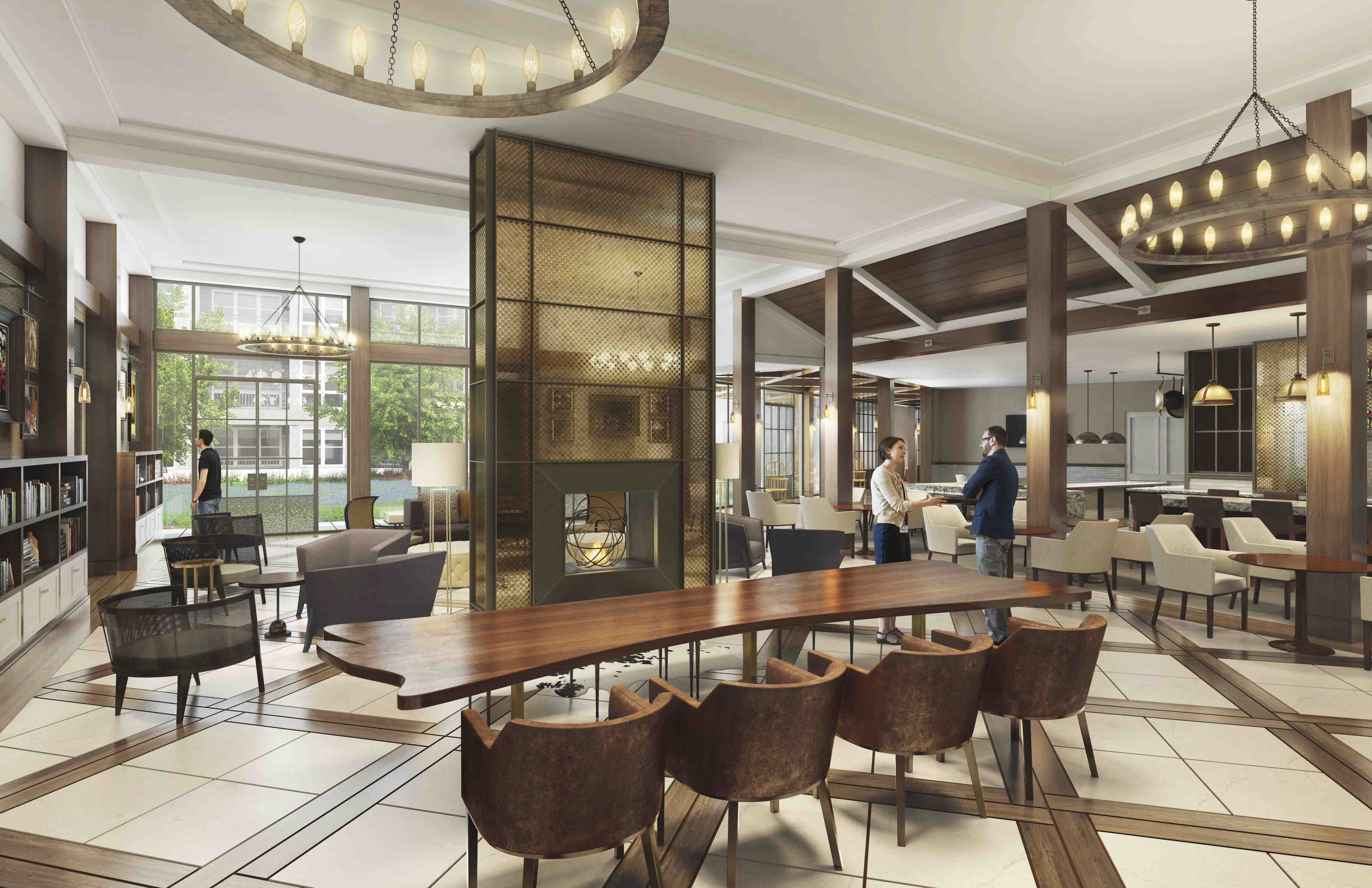 Drawing off of regional familiarities and the site’s close approximation to the historic Valley Forge of the Campaign of 1777 and Main Line the material selection was a modern twist inspired by those local materials of stone, wood, metal, and water. The spaces were designed to encourage Physical Activity, Mental Activity and Social Activity. Amenities include a 600 sf pool, spa, activity lawns, gourmet outdoor kitchens, grills, large chess, bocce, fire features, water features, lounge seating and couches in the two courtyards. The ground floor amenities include 2,000 sf of outdoor gardening, a dog run, and a 1/4 mile walking loop around the building.