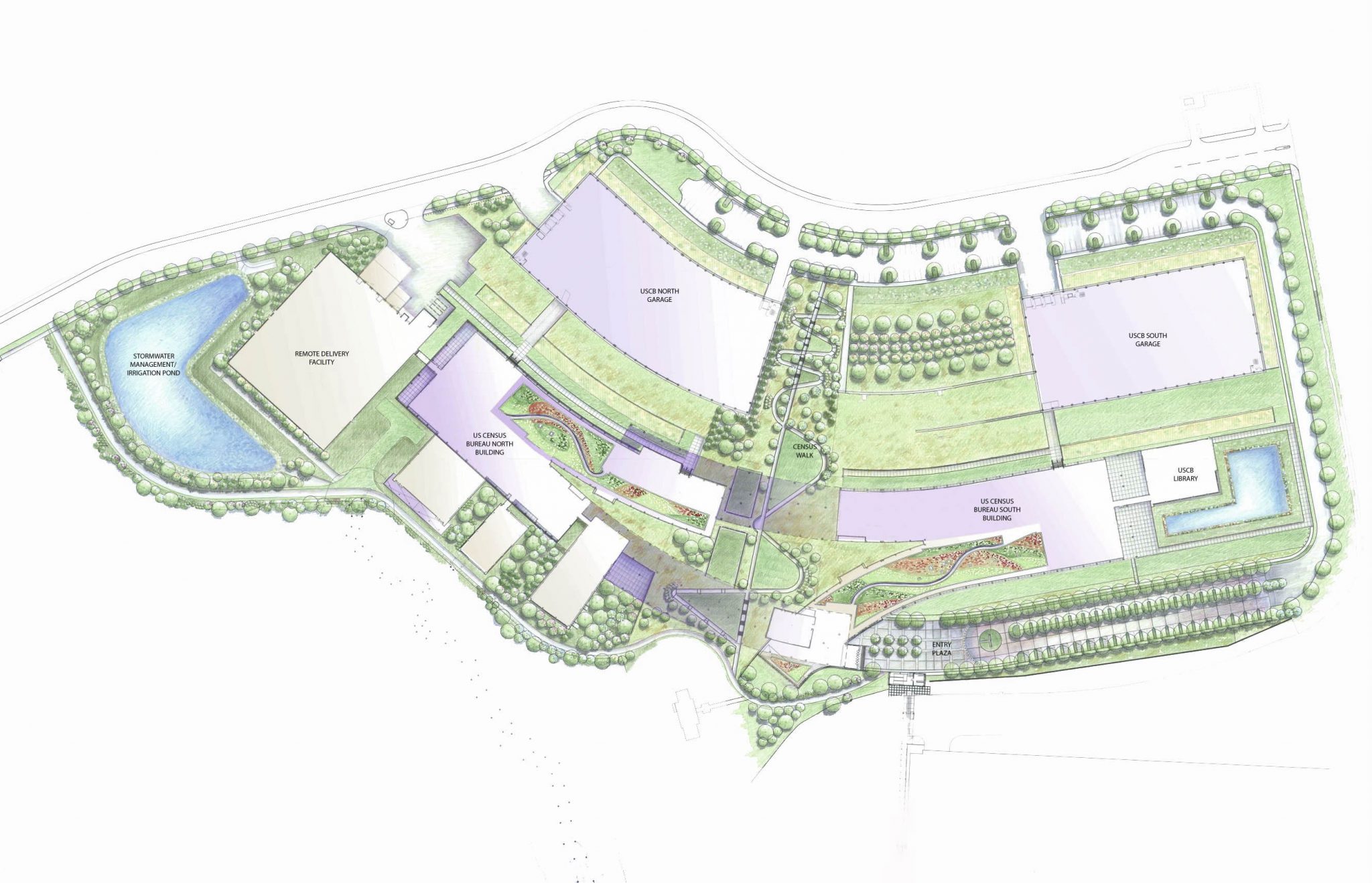 Mahan Rykiel Associates was the landscape architect of record for this LEED Silver project at the Suitland Federal Center. It is a state-of-the-art GSA facility for 6,000 federal employees and a prime example of a successful transit oriented development located near the Green Line.