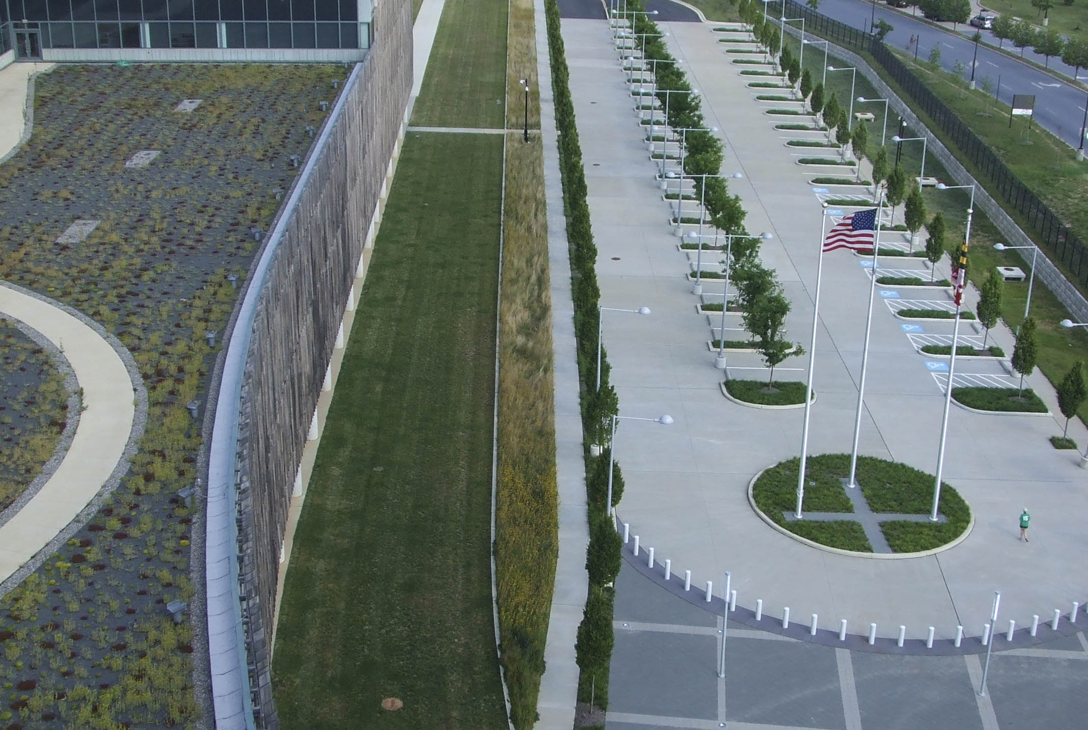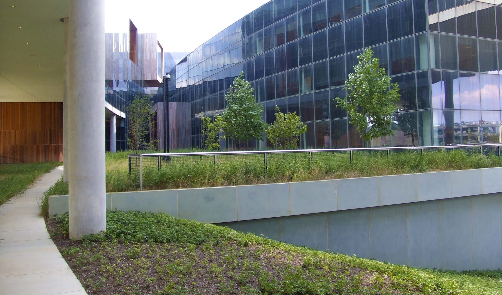 The rooftop gardens are highly visible from the upper floors of the building and are connected at several points to allow pedestrian access from one building to the other. MRA was challenged to create a naturalistic, sweeping meadow accented with native trees in areas with limited soil depth and extensive shade patterns. The project was completed using a ‘design-build with bridging’ method of delivery to ensure completion for the 2010 census.