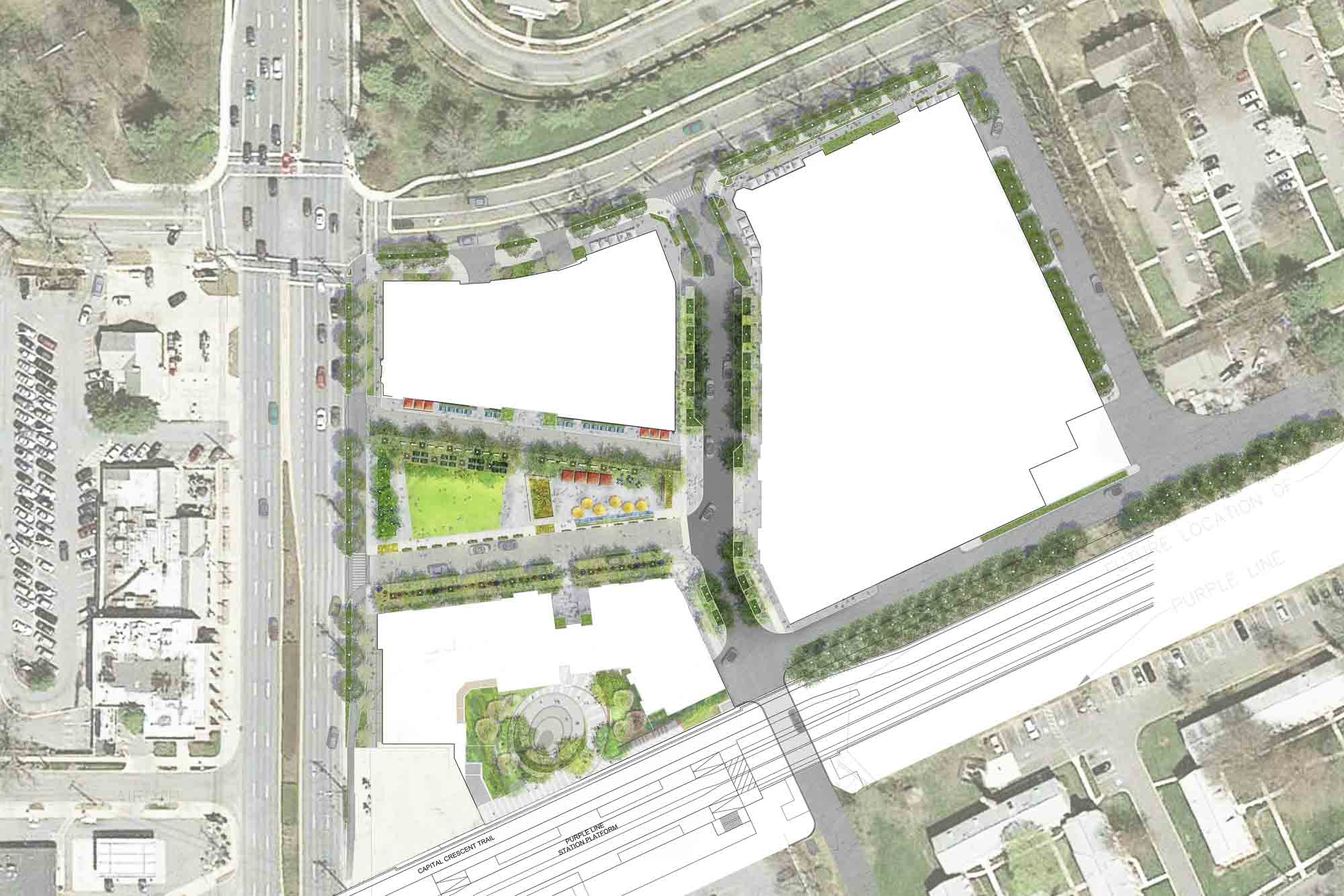 Chevy Chase Lake Block B, located next to the upcoming Connecticut Avenue Purple Line Station in Montgomery County, MD, is a 9.5-acre mixed-use development prioritizing transit accessibility. Originally the site of the Chevy Chase Lake Amusement Park from 1894 to 1937, the area is now a well-established neighborhood known for its traditional architecture, retail spaces, and pedestrian-friendly design. The development project embraces this rich history, focusing on enhancing community life and connectivity while offering new opportunities for shopping, housing, and public spaces.