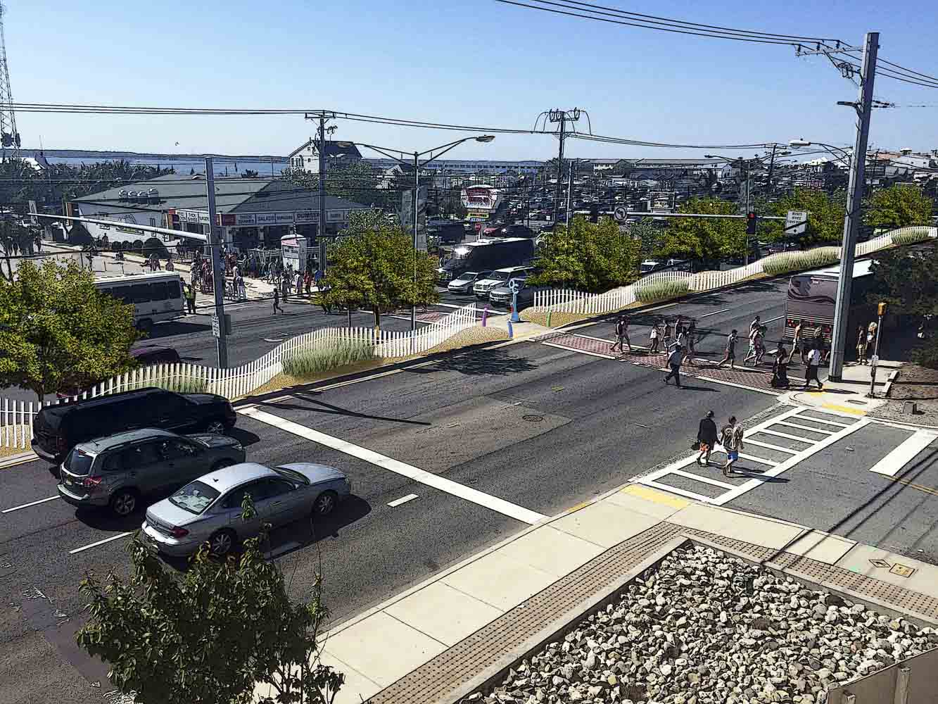 Maryland Department of Transportation State Highway Administration engaged Mahan Rykiel to design a median fence and additional pedestrian safety improvements on MD 528 (Coastal Highway) in Ocean City, Md to help reduce pedestrian accidents caused by mid-block crossings.