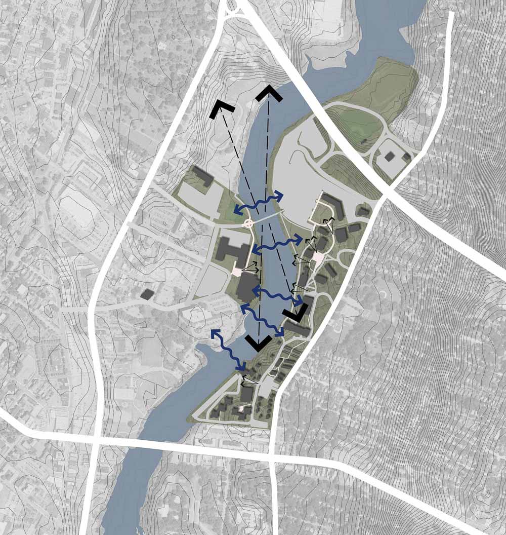 MRA worked with the project team to develop landscape recommendations for each of the campuses which couldn’t be more different. The Madison or “Florham Campus” is located on the former Twombly Vanderbilt estate and is characterized by an Olmsted-designed landscape. The Hackensack or “Metropolitan Campus” is a suburban campus bisected by the Hackensack River. Mahan Rykiel built upon the landscape analysis to develop recommendations to enhance pedestrian circulation, guide placement of future program elements, develop long-term planting strategies and to protect and enhance the unique landscape characteristics of each campus.