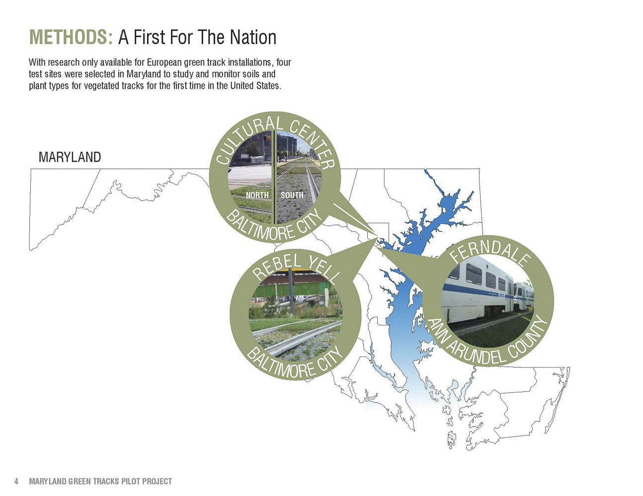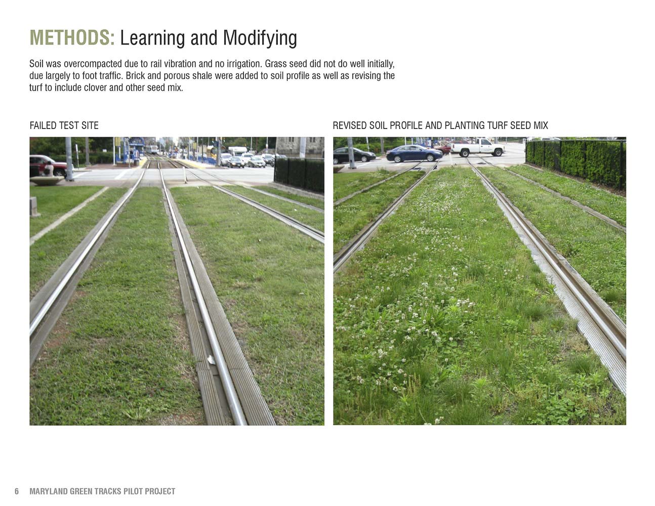 With research only available for European green track installations, four test sites were selected in Maryland to study and monitor soils and plant types for vegetated tracks for the first time in the United States.