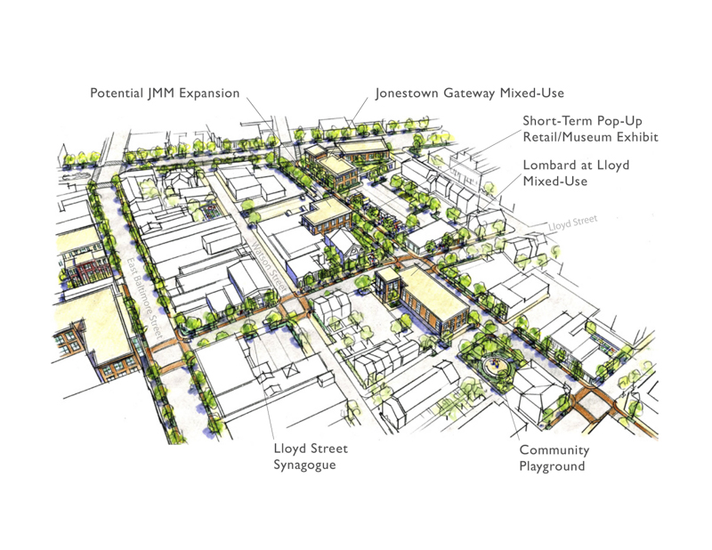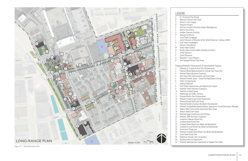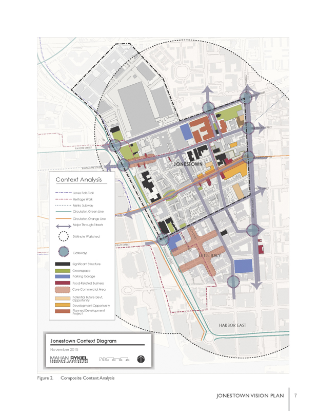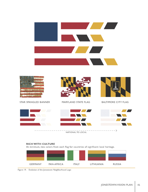 As Baltimore’s oldest neighborhood, Jonestown is rich with history and culture. Its proximity to the harbor and inland waterways enabled Jonestown to grow into a thriving center for American industry. Early residents included European immigrants and freed slaves from the South—all bringing with them their unique cultural and religious heritages. Following a public housing era that negatively defined Jonestown until the early 2000s, the neighborhood is seeing renewed energy and investment through several redevelopment projects and the growth of adjacent neighborhoods. Through a series of recommendations focusing on programs and operations, community identity/branding, development, and the public realm enhancements, the Vision Plan aims to give direction to the community and create a future for Jonestown that is as compelling as its storied past.