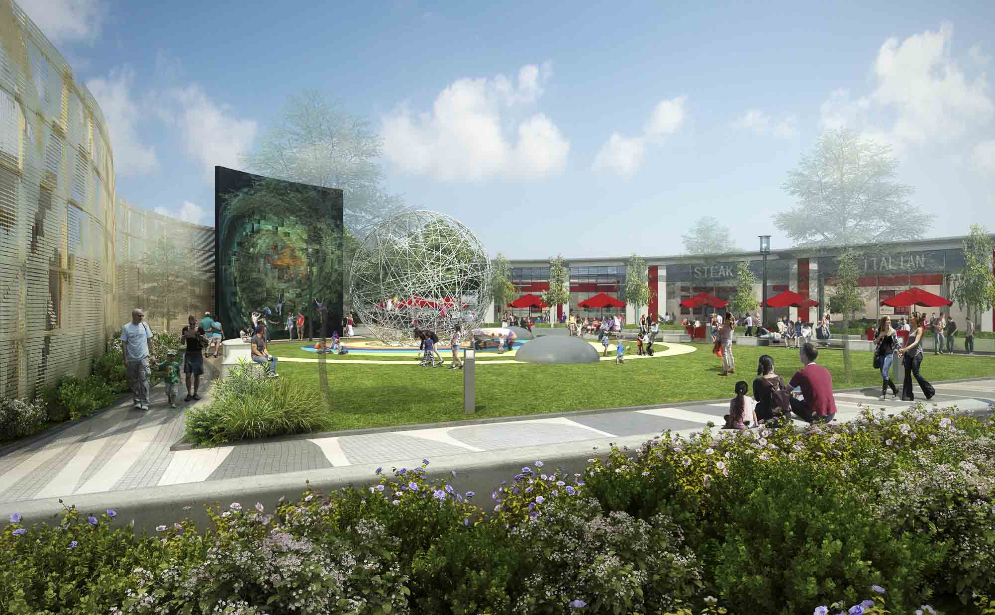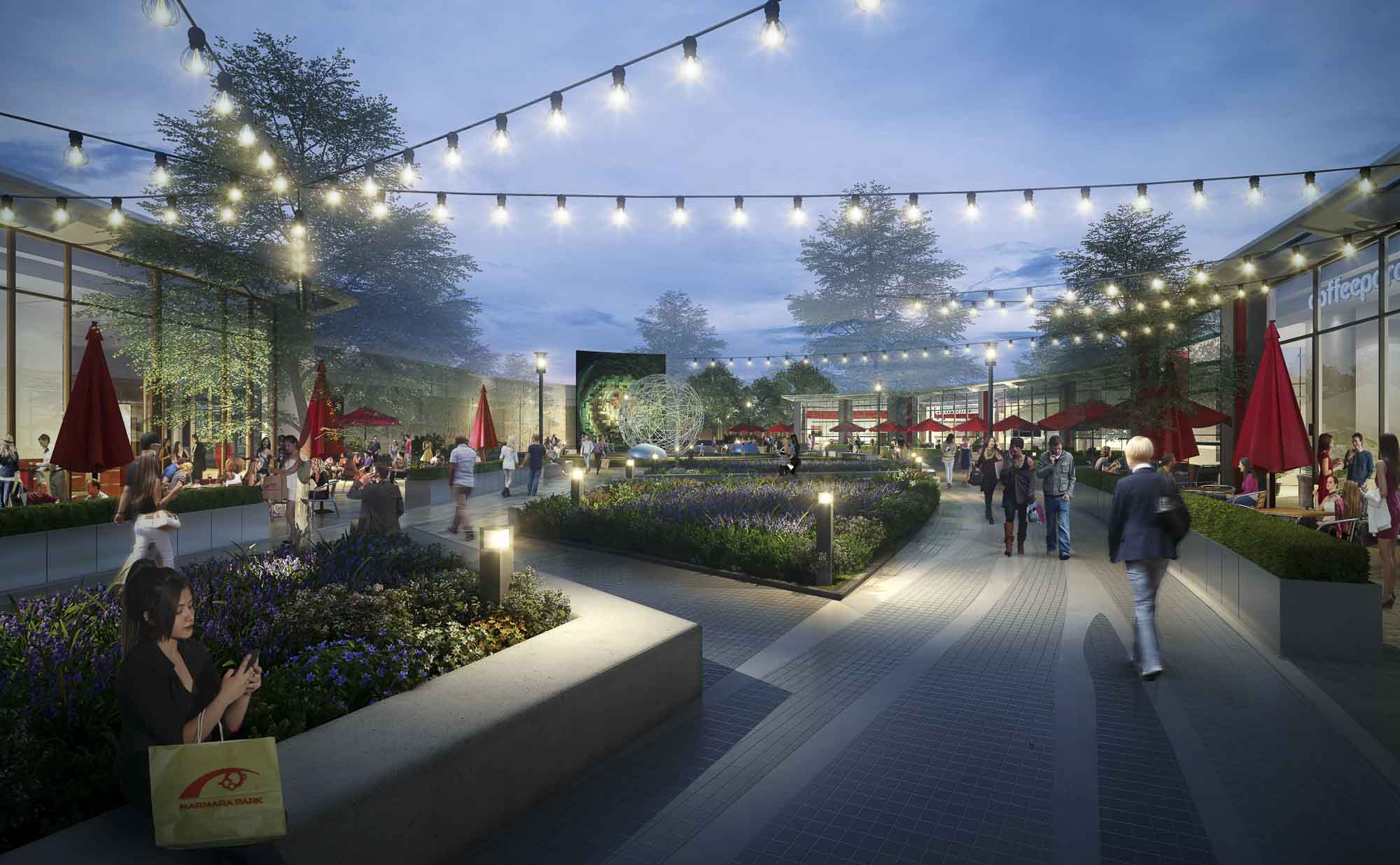 Mahan Rykiel Associates was responsible for the design of approximately 15,000 SF of landscape area on the roof of the shopping center. The outdoor plaza, intended to be used by families and shoppers alike, will include a play area, flexible open space, and dining terraces for open-air bars/restaurants. With a deeper focus on entertainment, the rooftop plaza will also include a 20 ft. high custom structure that can be used as both a climbing wall as well as an artful backdrop to the plaza.
