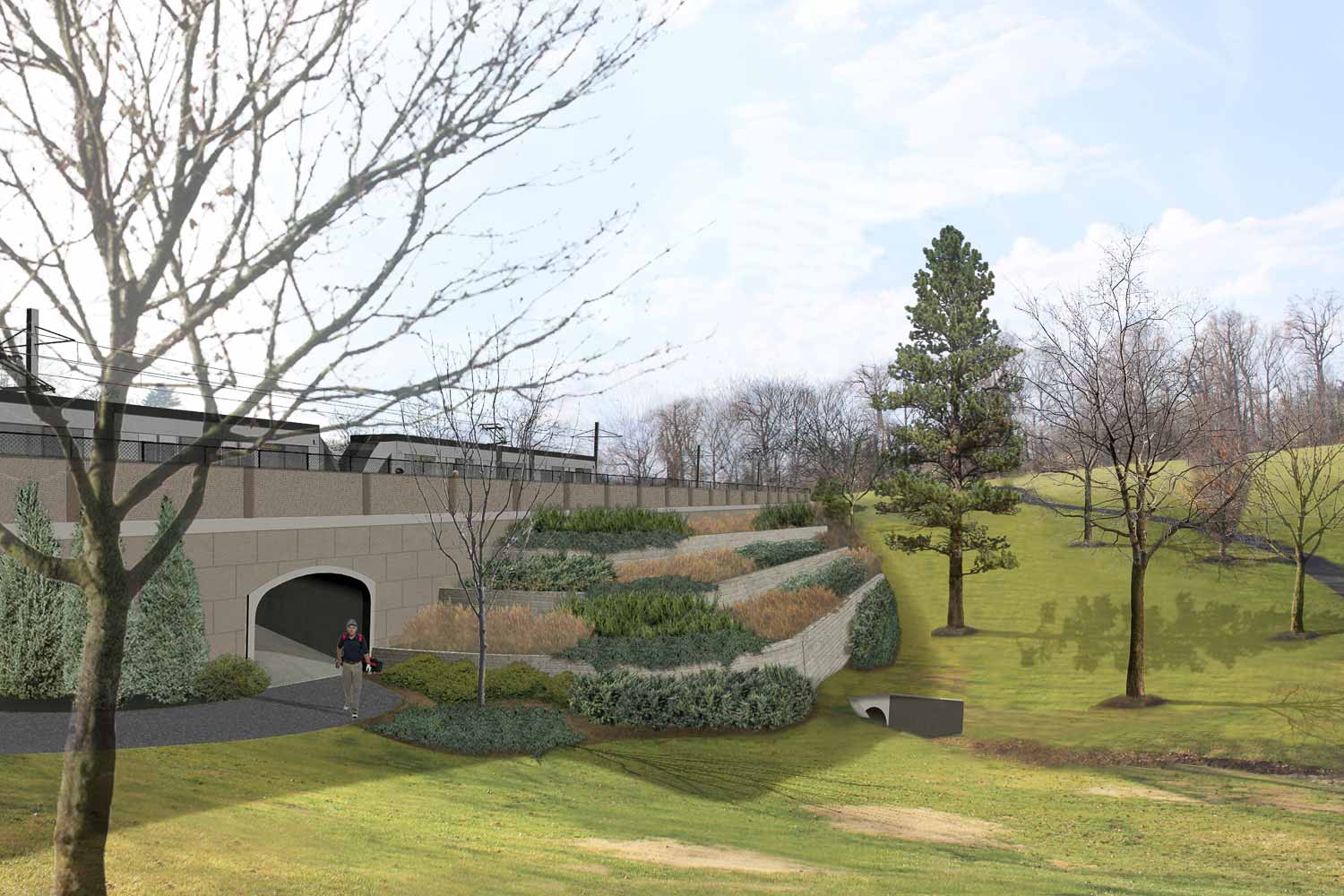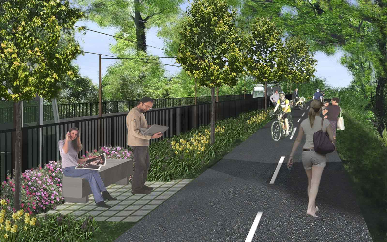 MRA’s work includes evaluating and designing circulation networks for bicycles, pedestrians, and motor vehicles. Work included concepts for open space and multimodal connections at station stops, evaluating current uses at stops and considerations for future development.