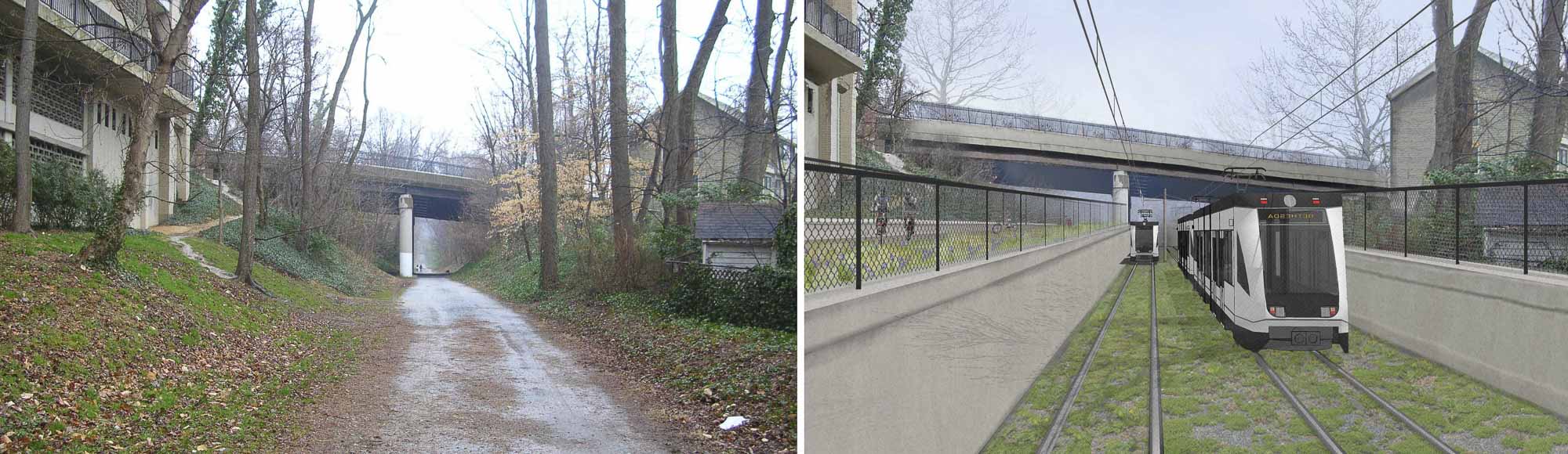 The Purple Line is a new light rail line that connects Bethesda to New Carrollton in the Washington D.C Metro area. The 16-mile long corridor traverses a densely developed urban and suburban landscape connecting several Washington Metro transit stops. MRA provided various visualization and land use impact studies for particularly challenging portions of the alignment.