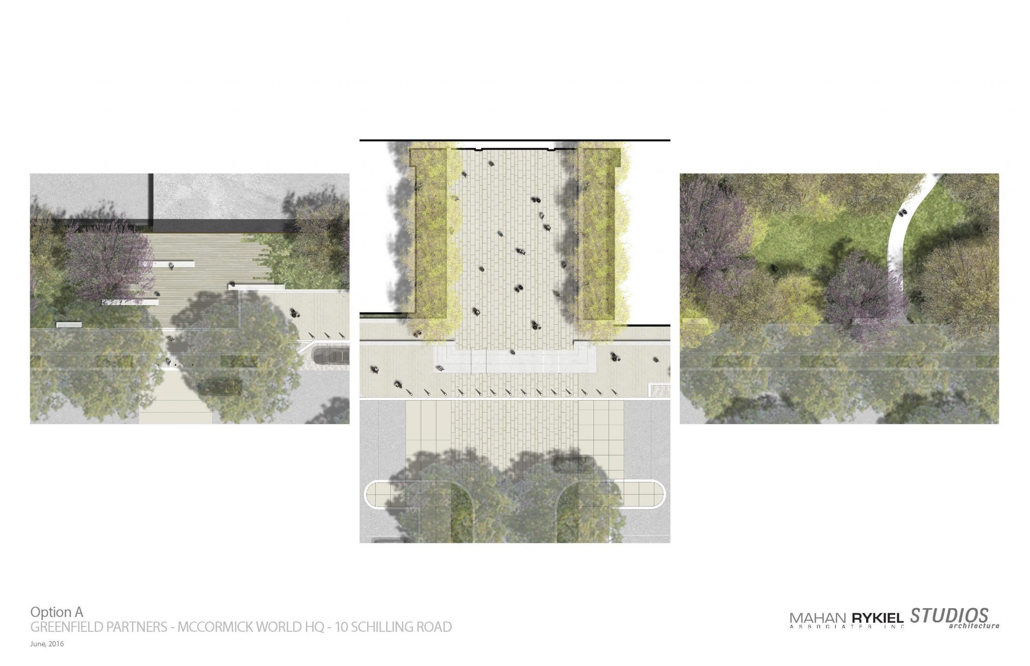 The adaptive reuse of an existing office building and 5.25 acre site will serve as the new world headquarters for McCormick and will consolidate staff and executives from multiple sites in the Baltimore region. Located in Hunt Valley, MD, the site will: reconfigure the vehicular and pedestrian circulation routes; remove significant impervious material; reestablish the landscape through an enhanced woodland edge and meadow planting that will be the foreground for a signature headquarters building.