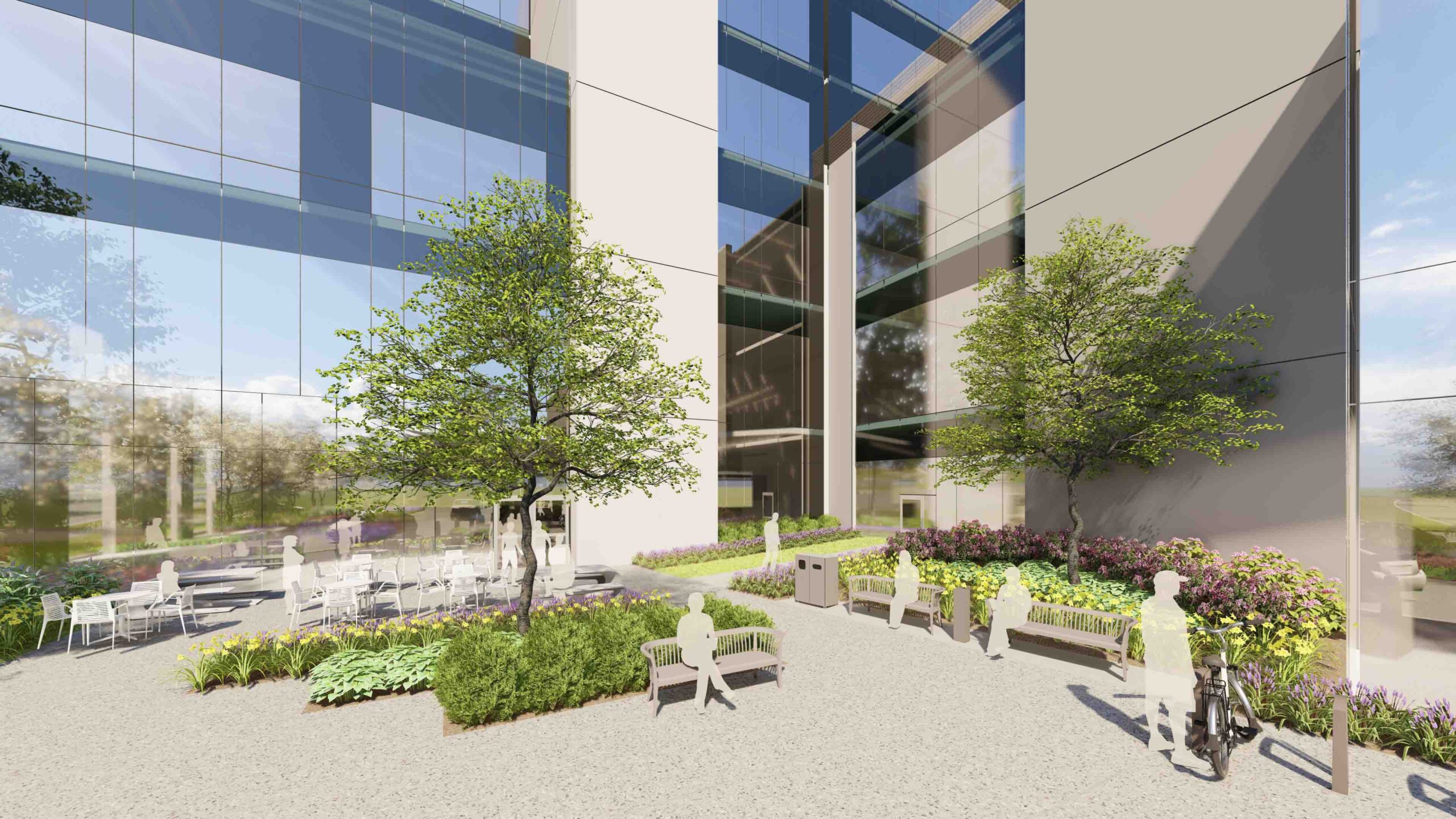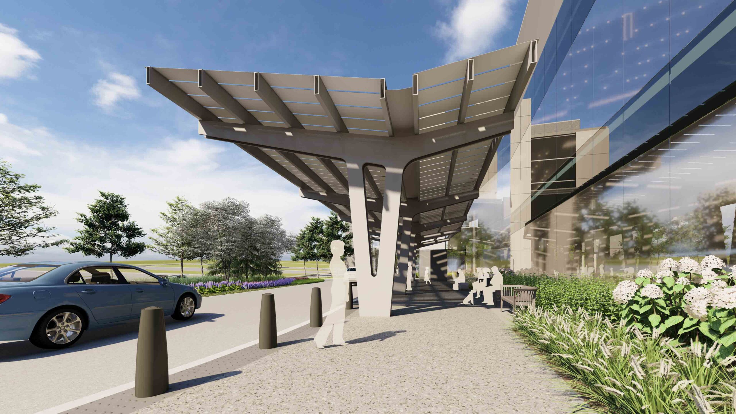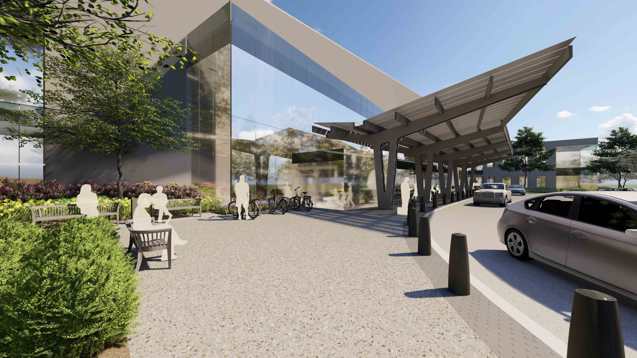 The landscape and site development of the Penn State Health—Lancaster campus seamlessly blends architecture and landscape to create a cohesive design with the vernacular architecture and landscape of the site and local area. Walking trails are an important feature of the campus’ overall health goals; encouraging visitors to experience the relaxation derived from time spent in the landscape as well as the healing benefits found through passive interaction with the sites existing features. Storm water management will be purposively integrated within the landscape and hardscape, incorporating strategies which make the most effective use of site facilities and serve as an attractive example of sustainability and innovation in environmental site design. These will act as attractive landscape features as well as provide natural irrigation and innovative storm water management opportunities. These features may also include interpretive signage or other opportunities for patient and staff interaction with the environment.