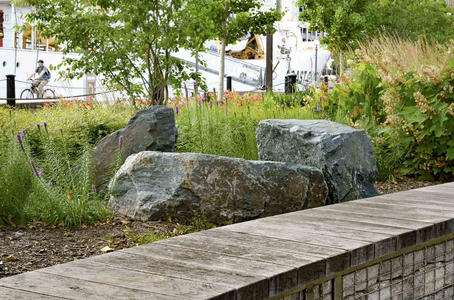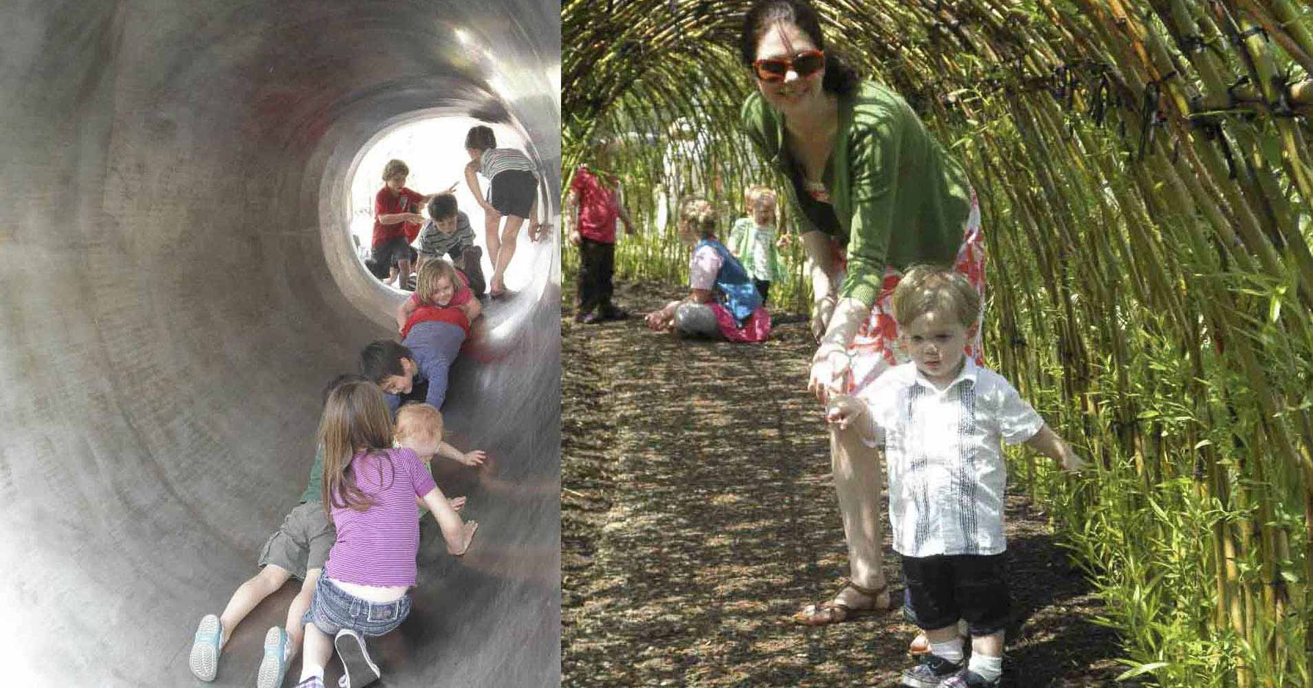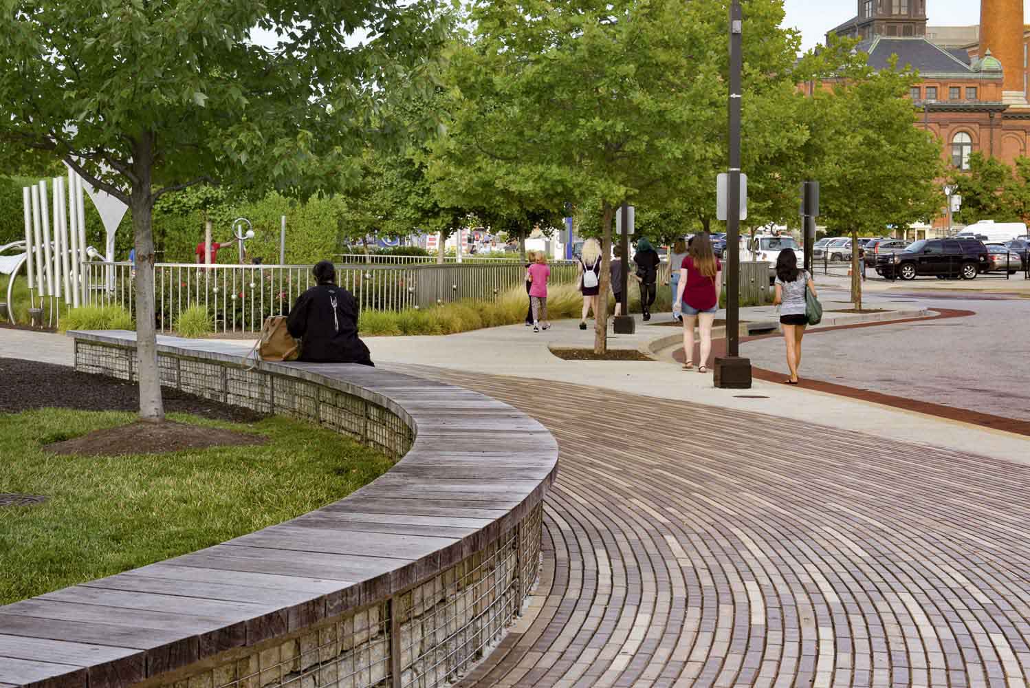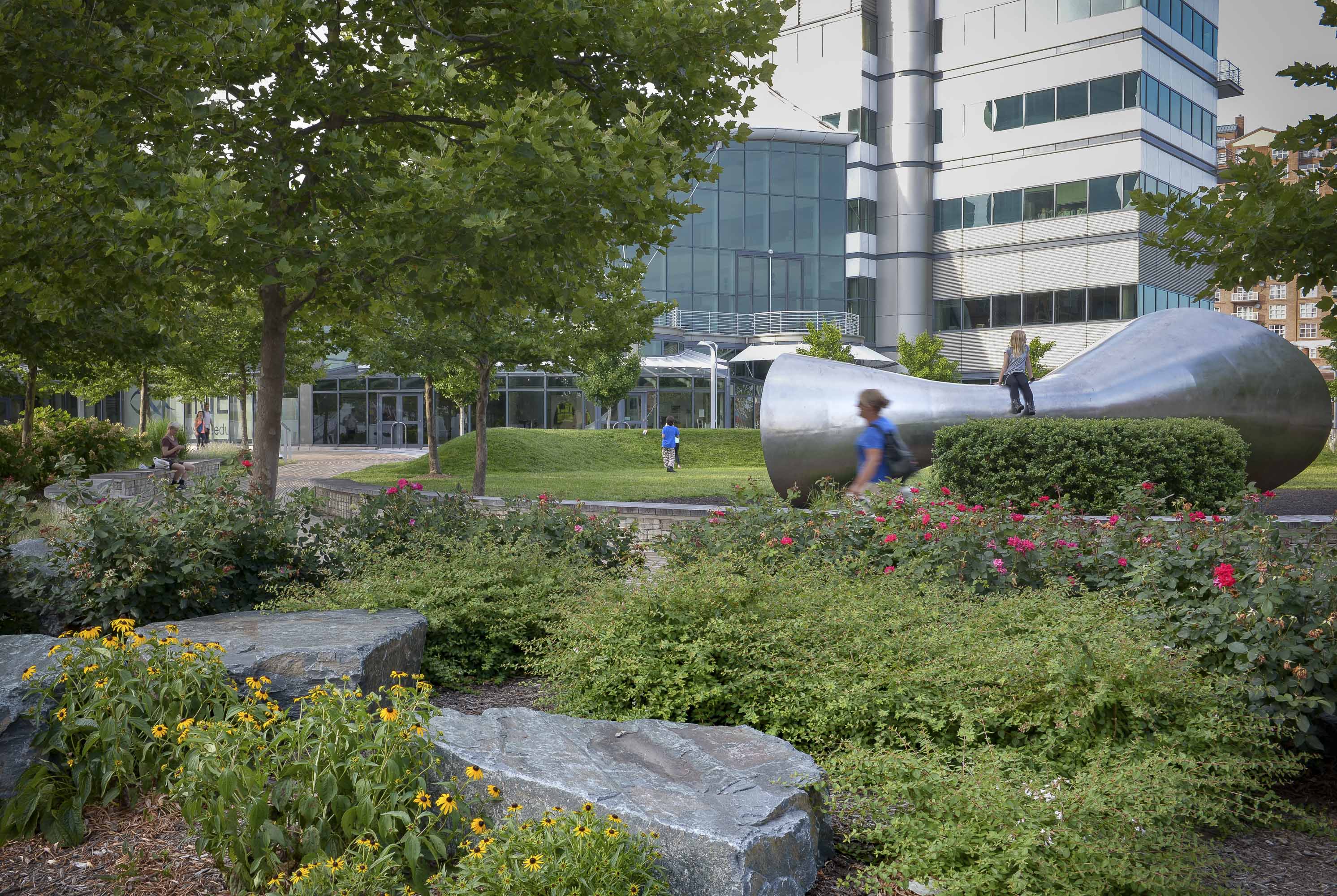 Inspired by his life and legacy, the family of Pierce Flanagan III sponsored the creation of a downtown park that bears his name. Selected by the family to design this park, Mahan Rykiel has created a unique open space that will engage children and families as part of the Inner Harbor landscape. The site is loosely designed as two open spaces connected by a “Ribbon Walk”. One area attracts older children to an unstructured play area which includes landscaped berms, an open green, and custom sculpture. The other area is designed for younger children and contains a living ‘willow tunnel’, two sculptures and a fence that produces musical sounds when tapped. Homophonic words are inscribed along the serpentine walk for children to discover.
