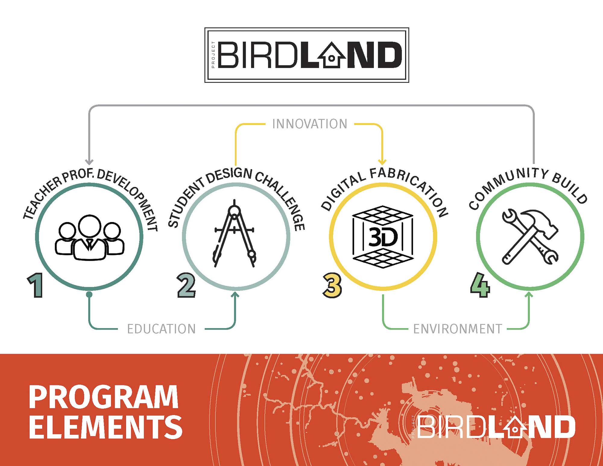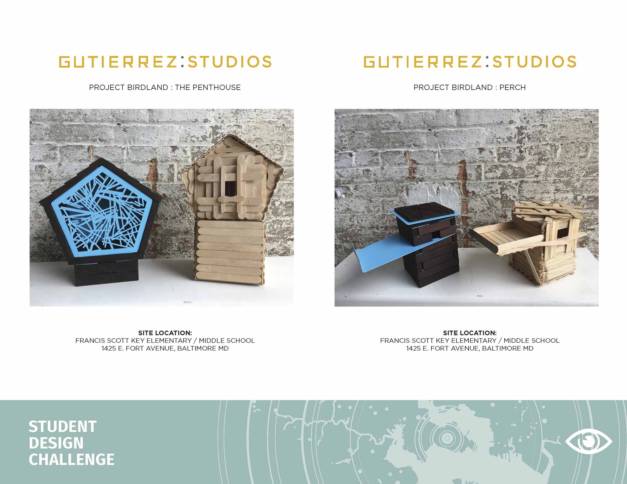 In the summer of 2017, Project Birdland implemented its first full-scale pilot transforming the educational experience at the Francis Scott Key Elementary/Middle School in the Locust Point neighborhood of Baltimore. Learning directly from urban ecologists, designers, and fabricators the students were challenged to study the impacts of urbanization and habitat fragmentation on urban song birds and to design and build birdhouse prototypes and an urban bird habitat; applying high-tech STEM principles and digital fabrication techniques to benefit urban ecosystems and landscape performance. The in-classroom design challenge culminated with a professional design jury selecting two student birdhouses for advanced manufacturing by the Baltimore-based Gutierrez Studios and a large community build-day that had hundreds of volunteers working alongside professions to install more than 3,000 native plants in the schoolyard; serving as both habitat for the birds/birdhouses and as an urban ecology lab for students.