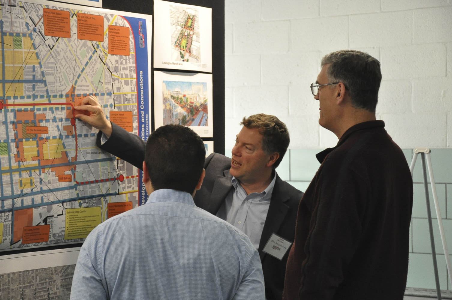 The Maryland Transit Authority has developed a ‘community compact’ with neighborhoods adjacent to proposed stations along the approved alignment of the Baltimore Redline. The intent is to partner with these communities to vision the impacts and opportunities associated with these two new stops. A Station Area Advisory Committee (SAAC) has been established to work with businesses, residents, developers, University of Maryland BioPark representatives, and other stakeholders to leverage the potential of this new transportation corridor. Mahan Rykiel is worked with the MTA and other consultants to facilitate and document this process.