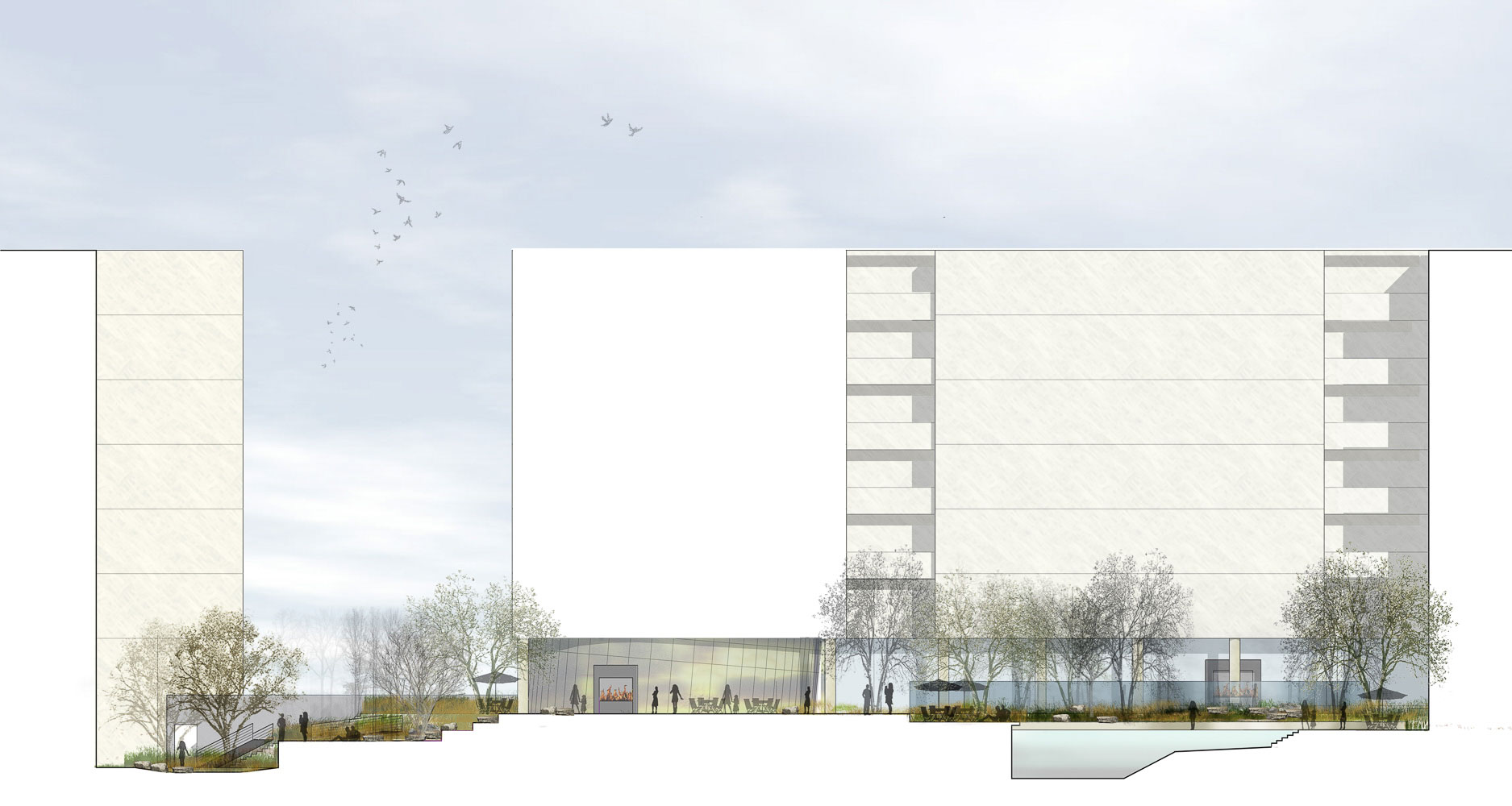 The design of White Flint is guided by an interpretation and expression of the region’s ecological and cultural character. The central courtyard, nestled within the architecture, echoes the lines and forms of riparian corridors. Lush rain gardens, planted with native vegetation provide hydrological performance and beauty.