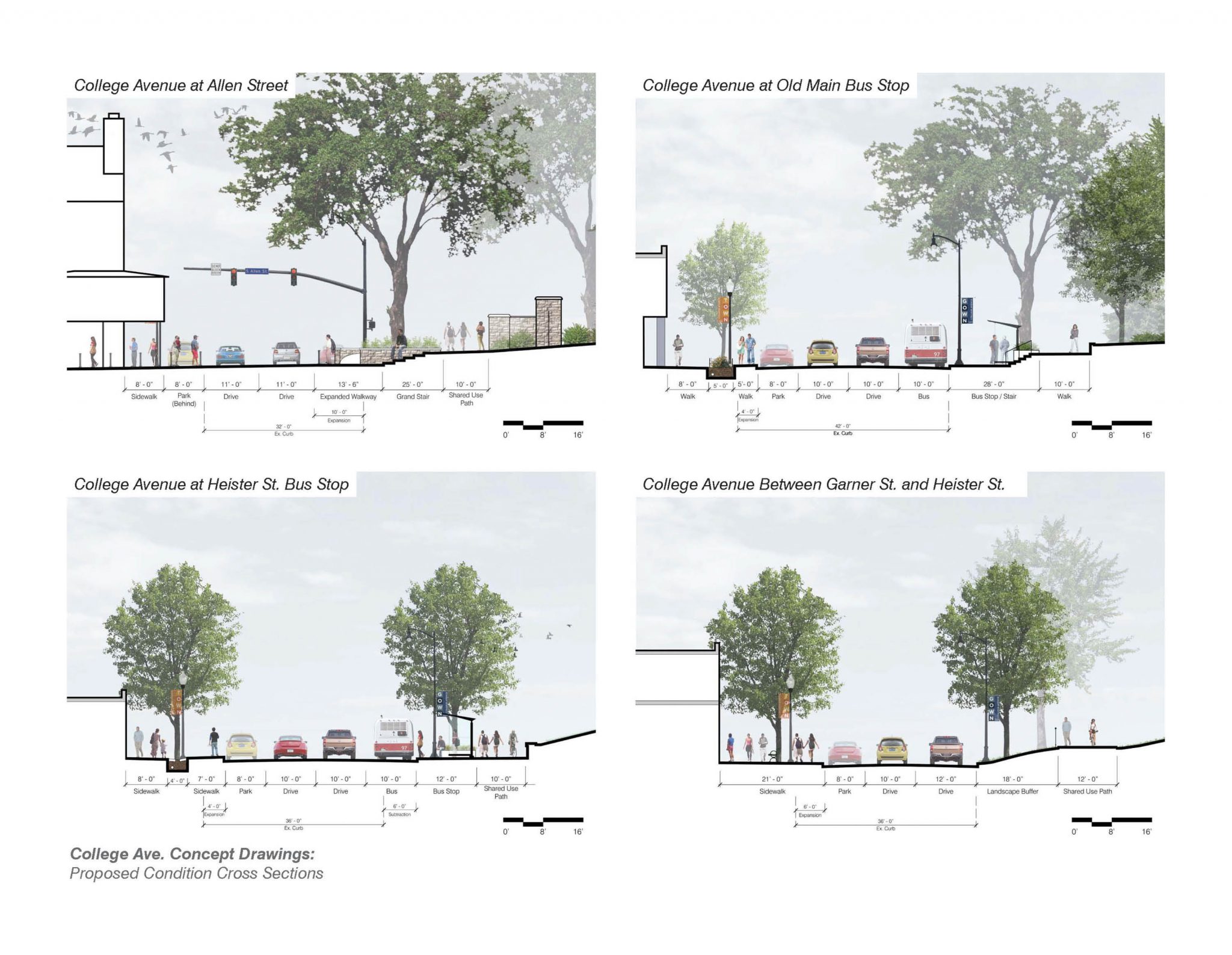 Specific recommendations of the plan include streetscape and open space enhancements to improve pedestrian safety and transportation options, improve the downtown image and enhance the Town-Gown relationship between the community and the University. Recommendations also incorporated a complete community branding program including logos, wayfinding signage and marketing collateral materials to better promote downtown to internal and external markets.