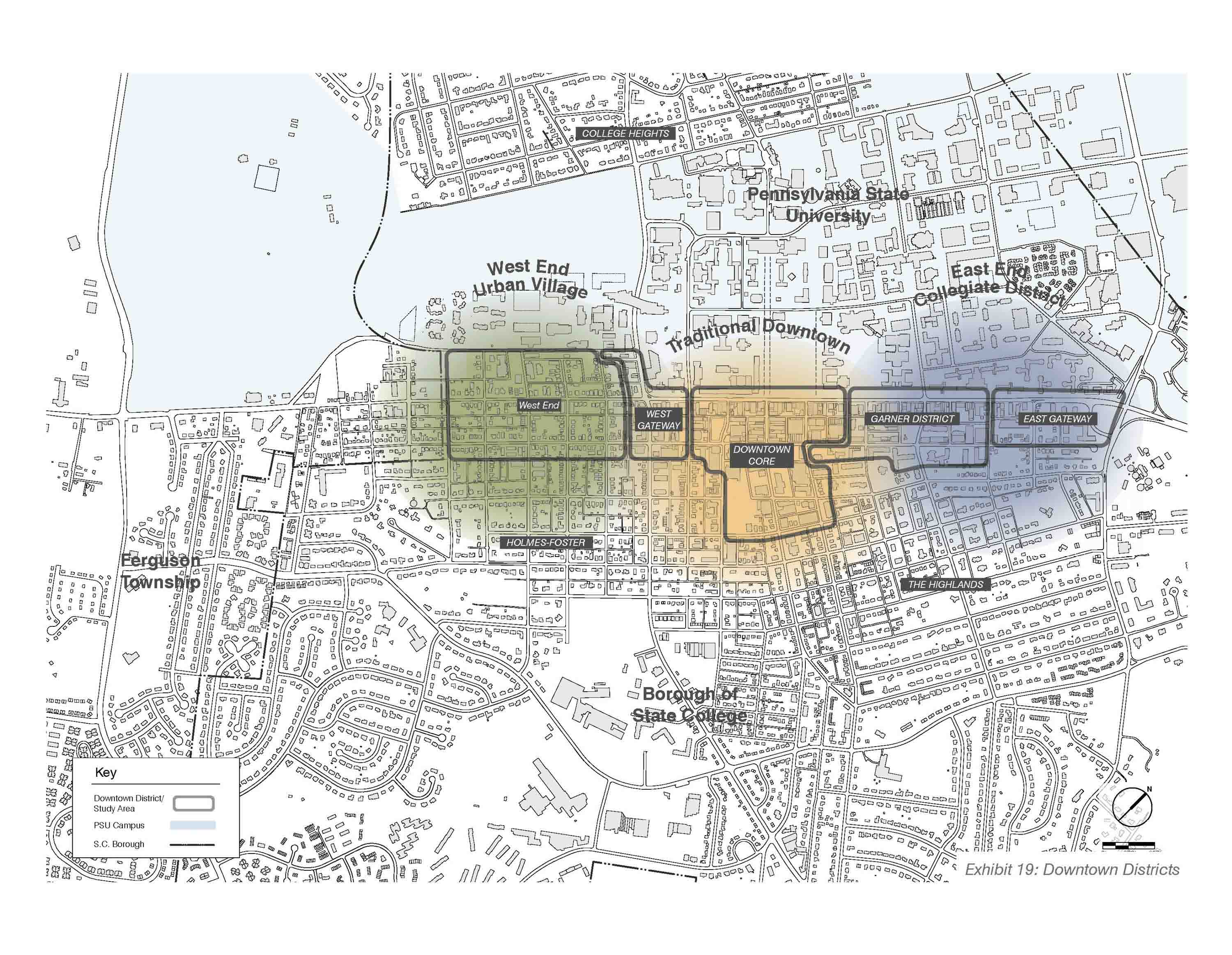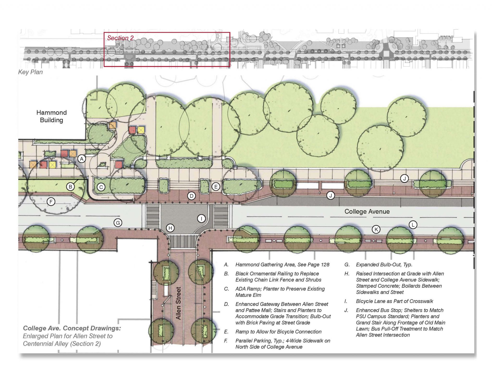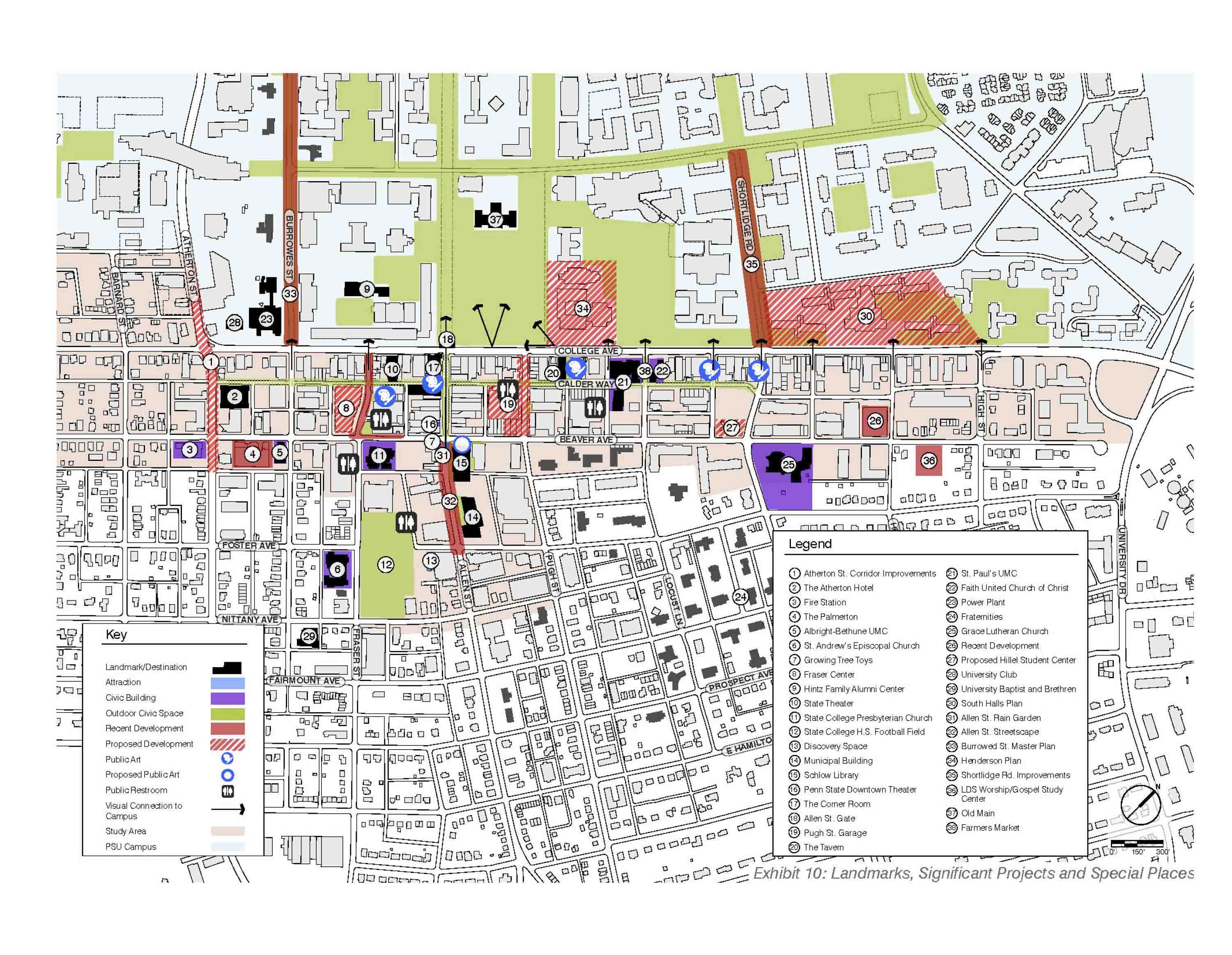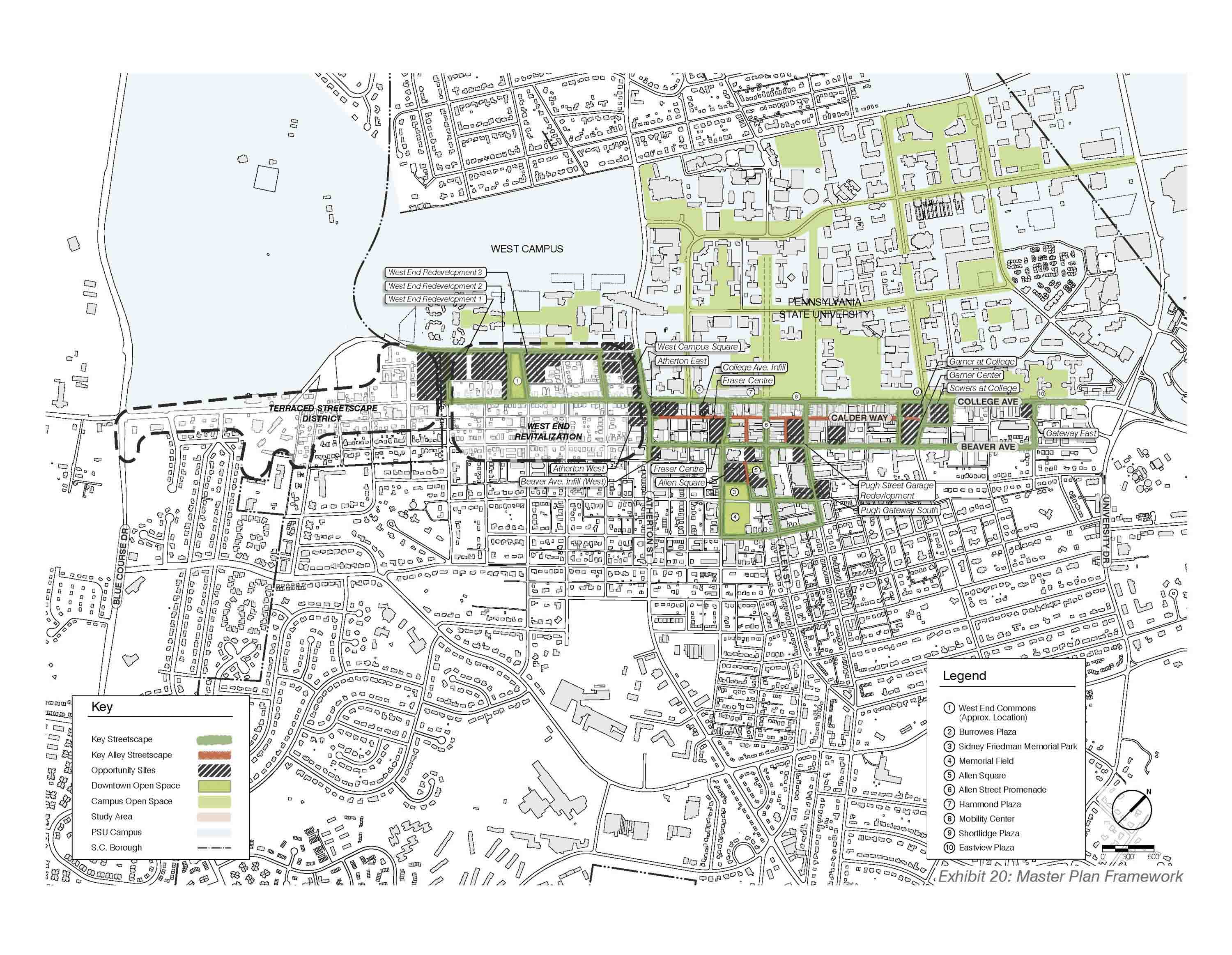 Working with a partnership of State College Borough, Penn State University, and Downtown State College, Inc., Mahan Rykiel led a planning and design team in preparation of a master plan for the community’s downtown. The plan focused on establishing and marketing a strong downtown identity; establishing a framework to create an attractive and vibrant public realm; and identifying public and private sector improvements to diversify downtown businesses, users and residents. The plan is grounded in market realities and broad stakeholder participation.