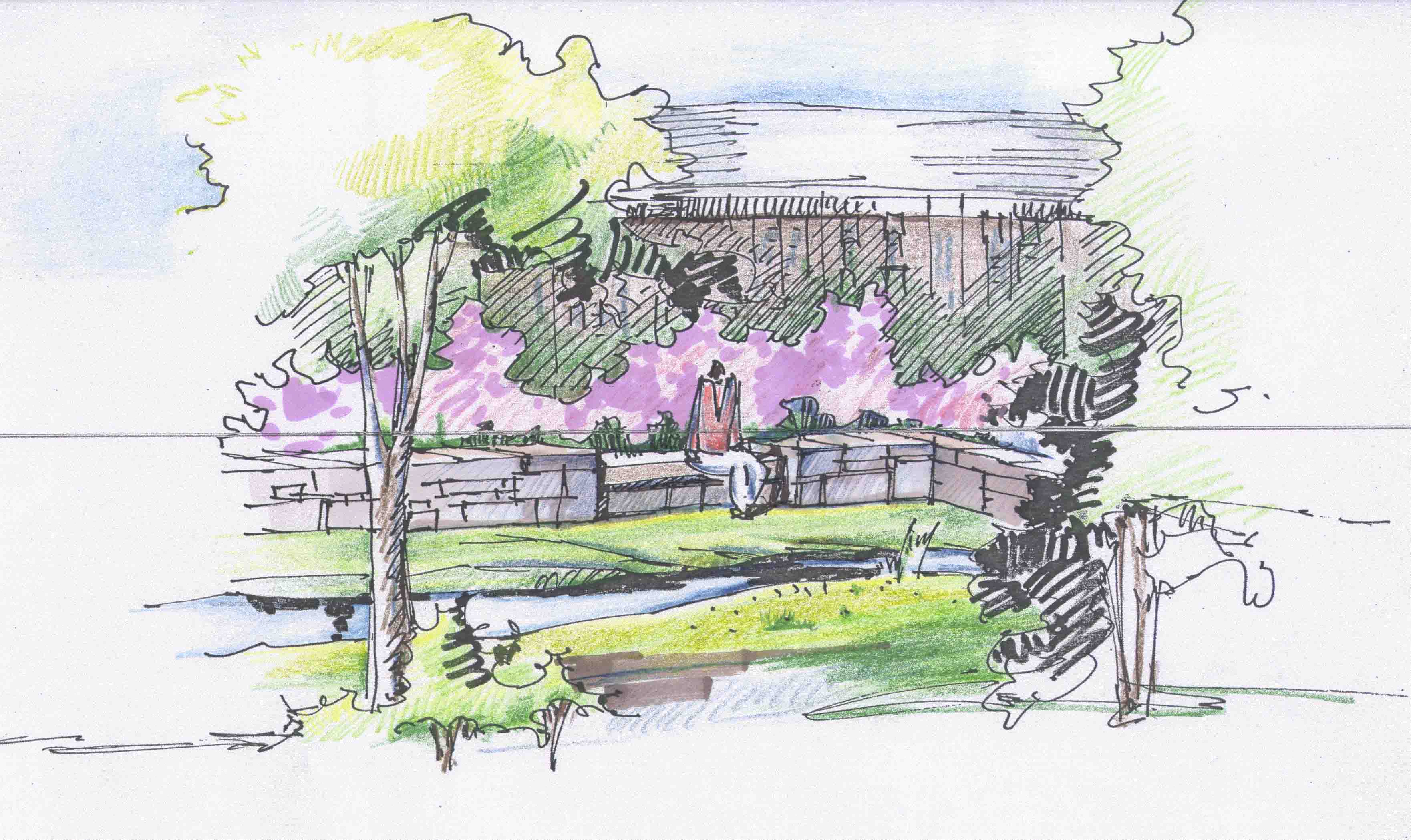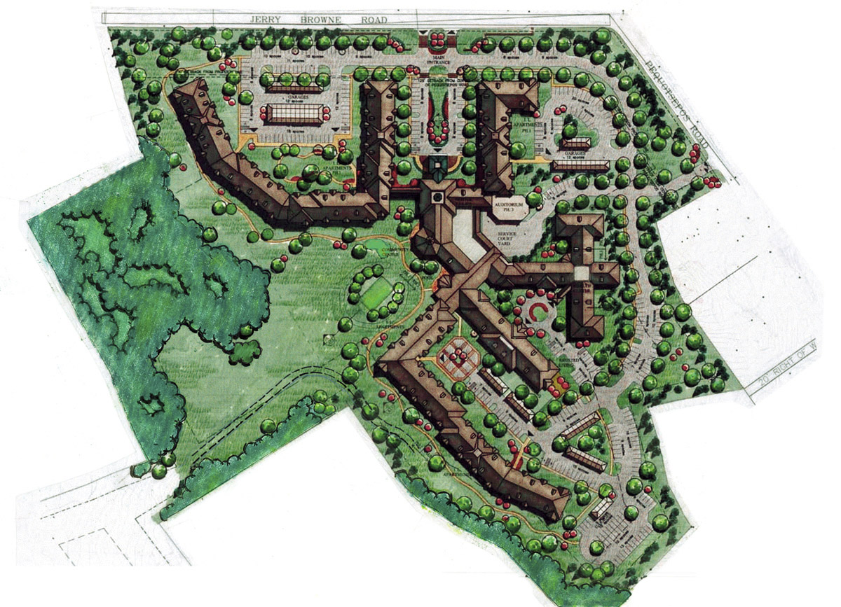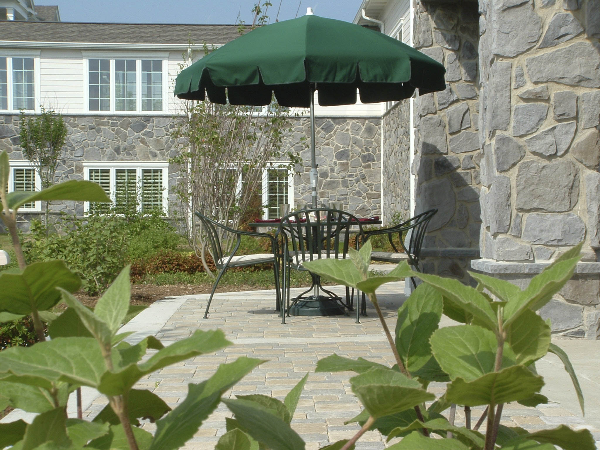 The landscape plan creates a variety of courtyards and intimate outdoor spaces while enhancing views to the adjacent conservation area. Extensive walking paths around the periphery of the buildings provide ample opportunity for residents to enjoy this natural landscape. Residents have access to smaller, more formal courtyards within the buildings.