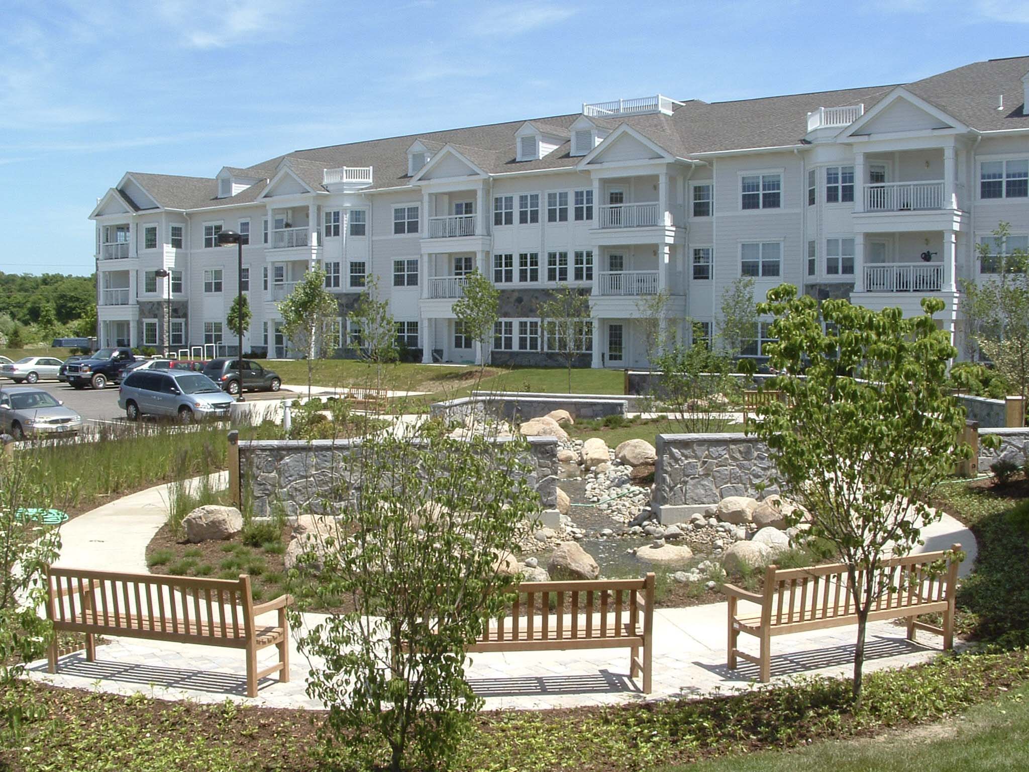 In the planning of this community, MRA paid special attention to the design vocabulary of the surrounding New England landscape. Historic stone walls within the site are maintained and enhanced as integral elements of the site development.