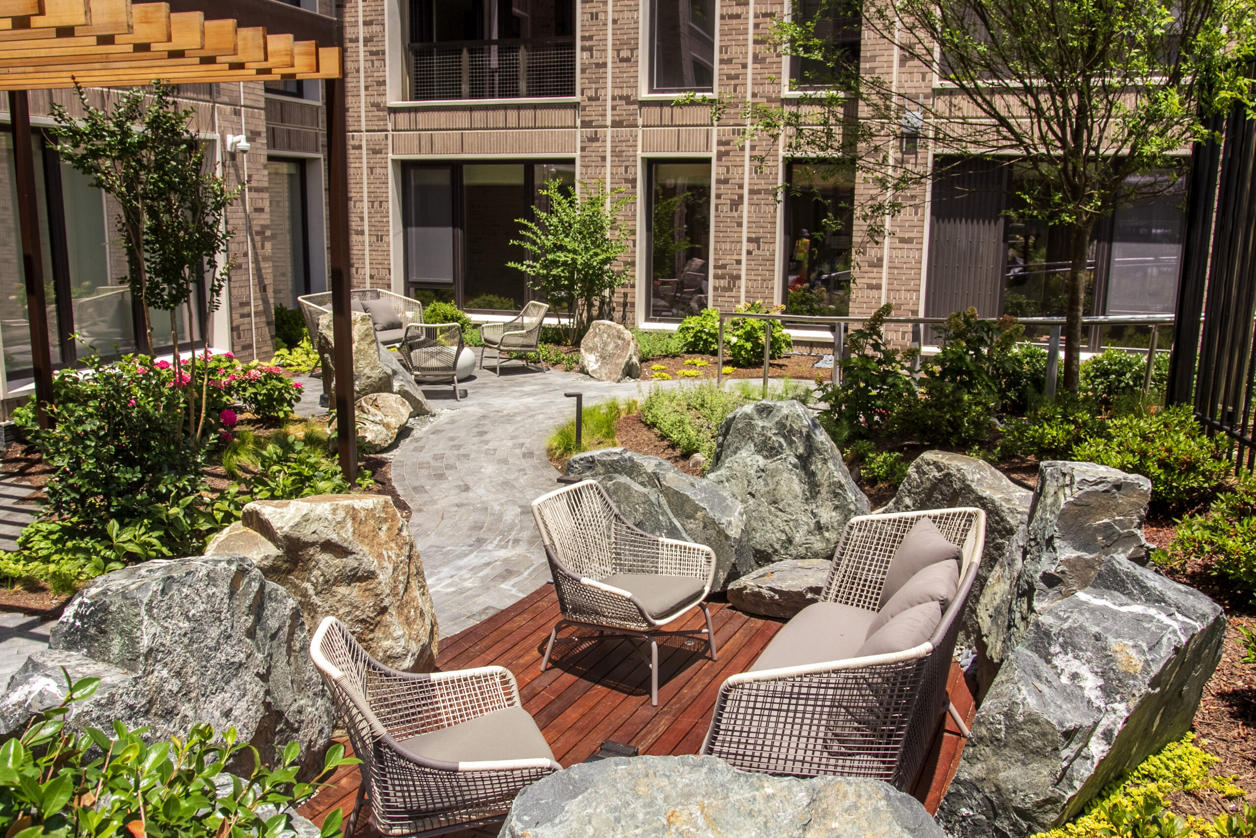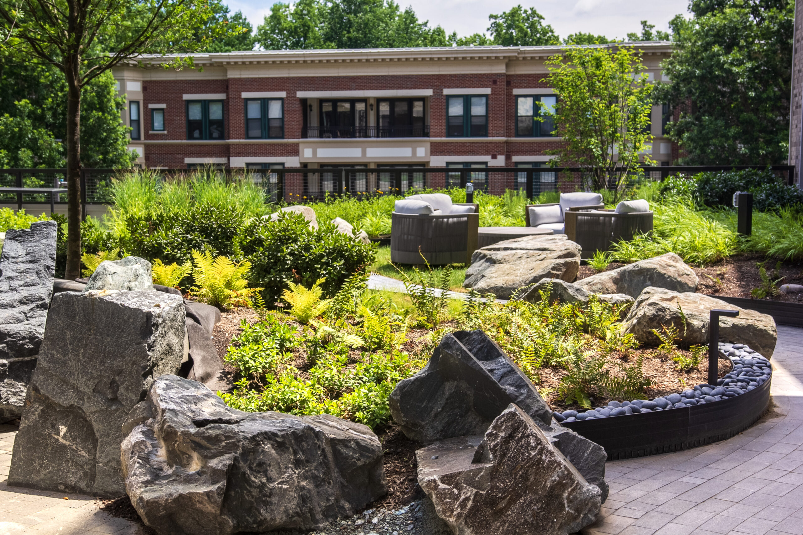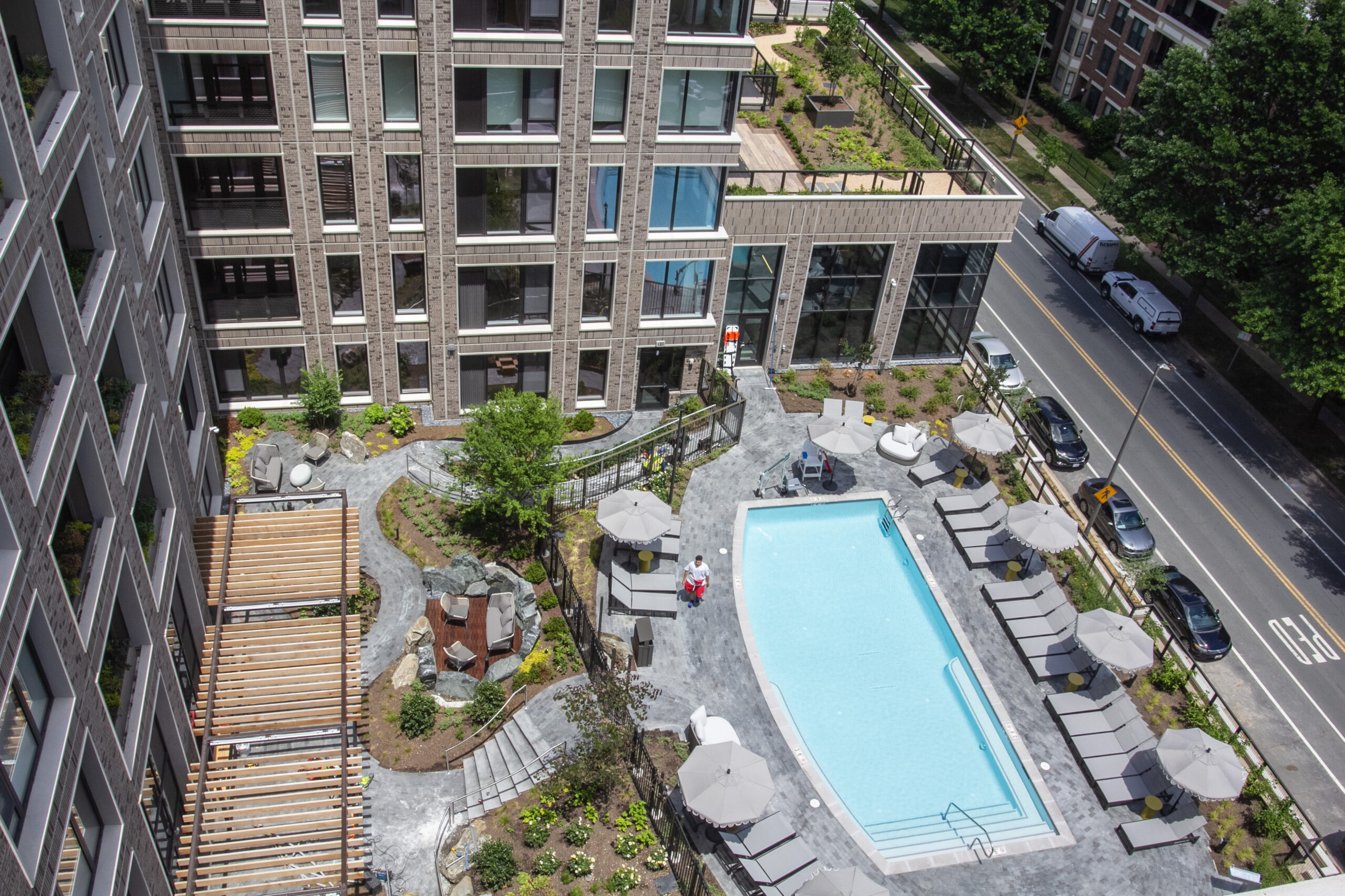Strathmore Square creates a connected, upscale community that provides a pleasant link between the neighborhood, the Metro station and the Music Center at Strathmore. The site features approximately 8 acres of potential developable land, as well as land reserved to expand the parking garage. Mahan Rykiel’s design and documentation services are focused on the streetscape, public realm plazas, and amenity decks and terraces. Phase I is built with Phase II under construction.