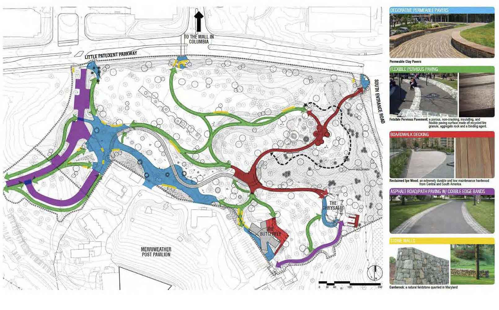 Mahan Rykiel Associates is working with an international design team that includes Martha Schwartz Partners to create a new park near Merriweather Post Pavilion. The plan provides an array of venues designed to make the park a destination for the community.