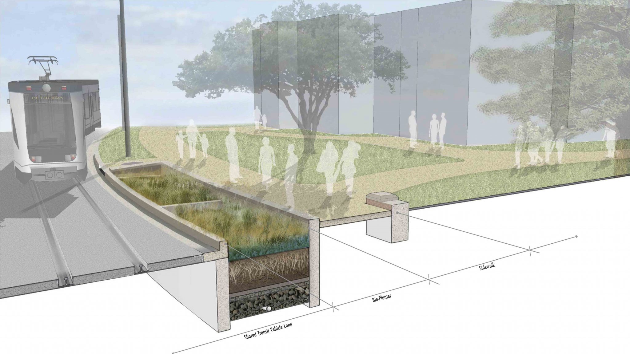 When rail is not the answer, we must rethink how we move people, whether by City or regional bus, vans, commuter bus, connecting services, or ride-shares. How we engage ridership, and how we make transit desirable will help achieve a successful system. Our approach to transit is all encompassing, from arrival (how does one get there?) to the experience of waiting, to the experience of the corridor and how well it connects to other modes of mobility for seamless, accessible movement.