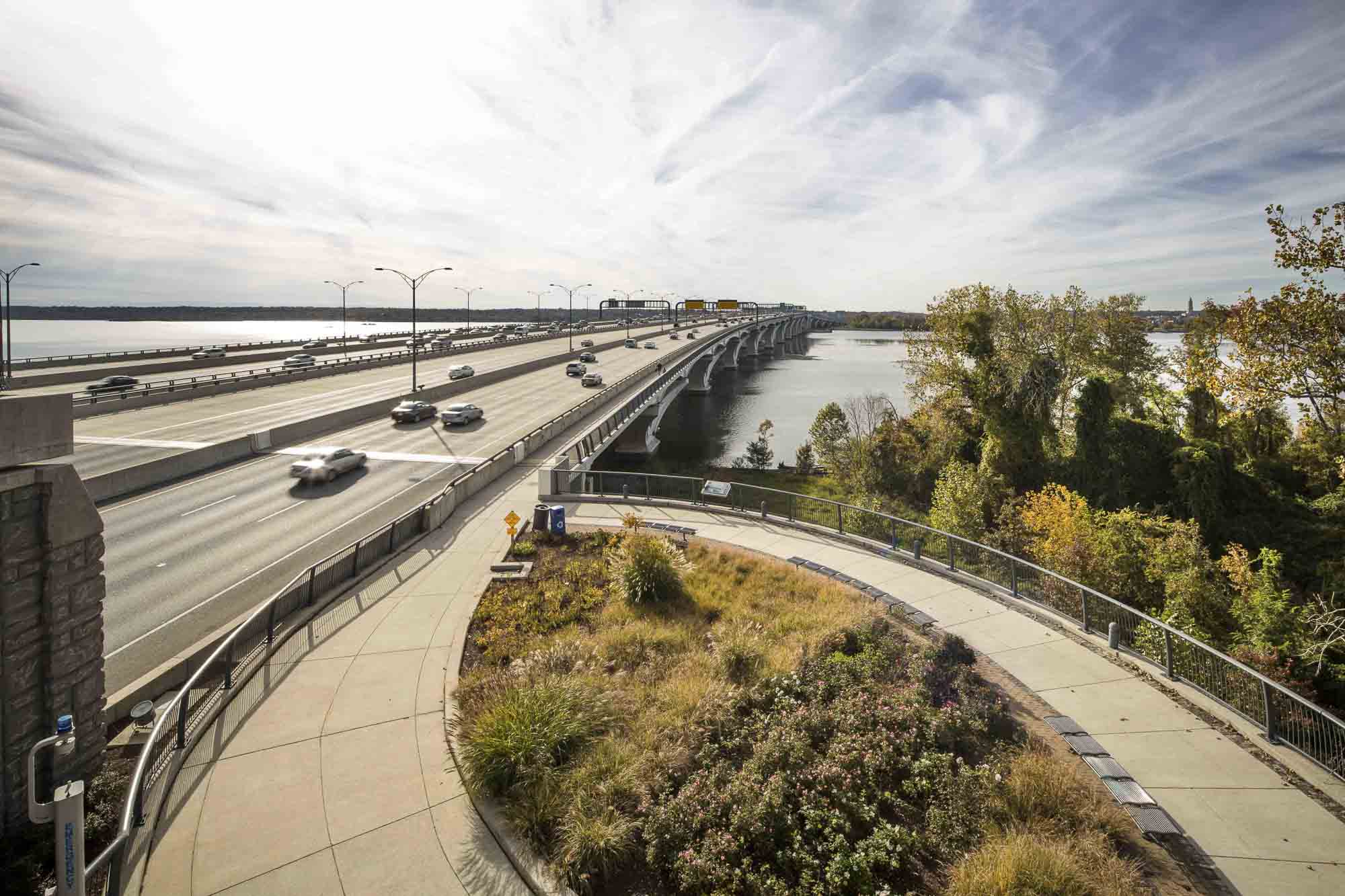 The Woodrow Wilson Bridge is the only Potomac River crossing in the southern half of the Washington, DC region. Designated as both I-495 and I-95, this heavily traveled bridge plays a significant role in the regional transportation system and will be one of the most complex urban transportation improvement projects in the nation. The project involves construction of a twin-bridge, 12-lane, moveable span facility, including major upgrades of four adjacent interchanges and a Deckover joining Rosalie Island to trails in both Maryland and Virginia.
